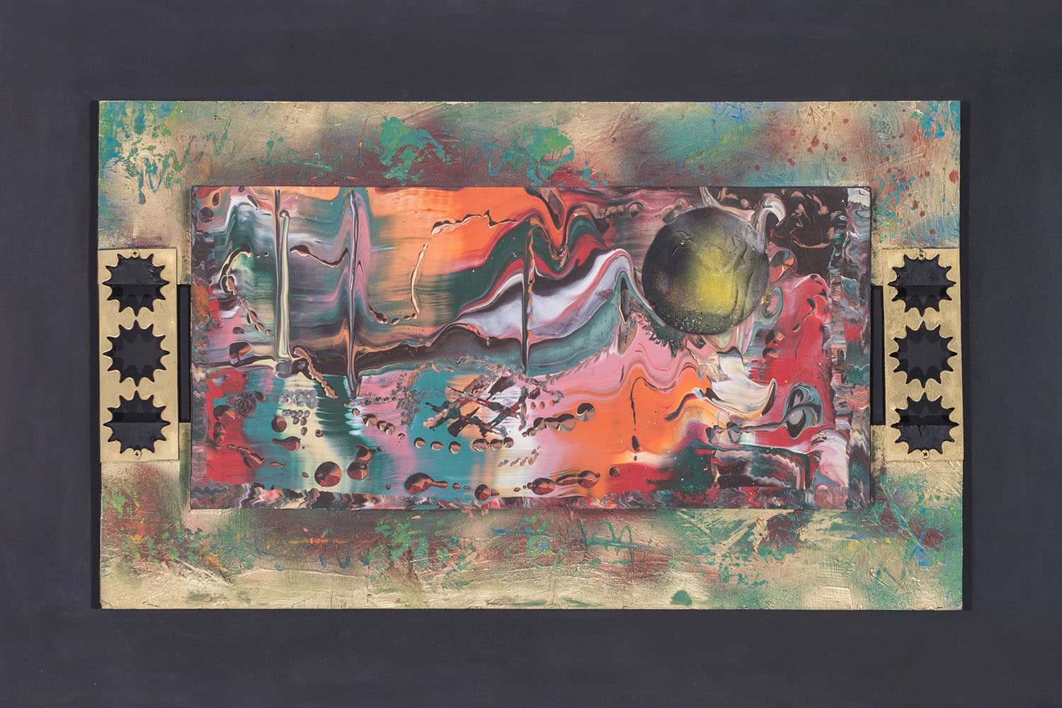 Referencia al libro más leído de todos los tiempos, lo dejo a la más libre interpretación… Obra muy combinada donde se aprecia color, movimiento y unos soportes laterales que le dan un marco destacando aún más el tema. Marco realizado artesanalmente de hierro y madera.