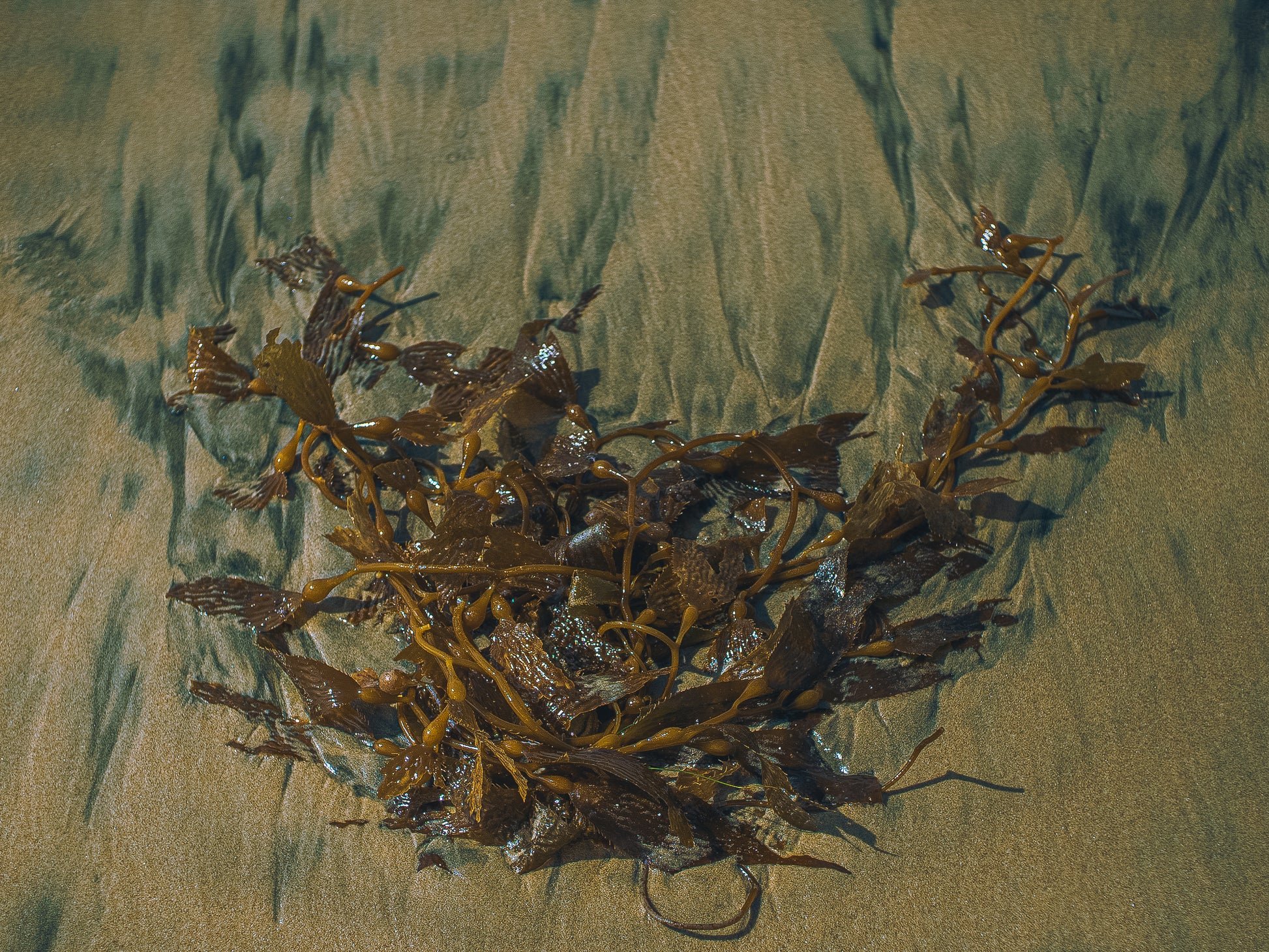 La fuerza de las olas es curiosa al elegir el ecosistema playero, un poco azar pero una costumbre son las algas, que me regalan un poema a la nostalgia del no pertenecer, pero naturalmente adornarlo con majestuosa gracia, como si de alguna manera siempre hubiera estado ahí.