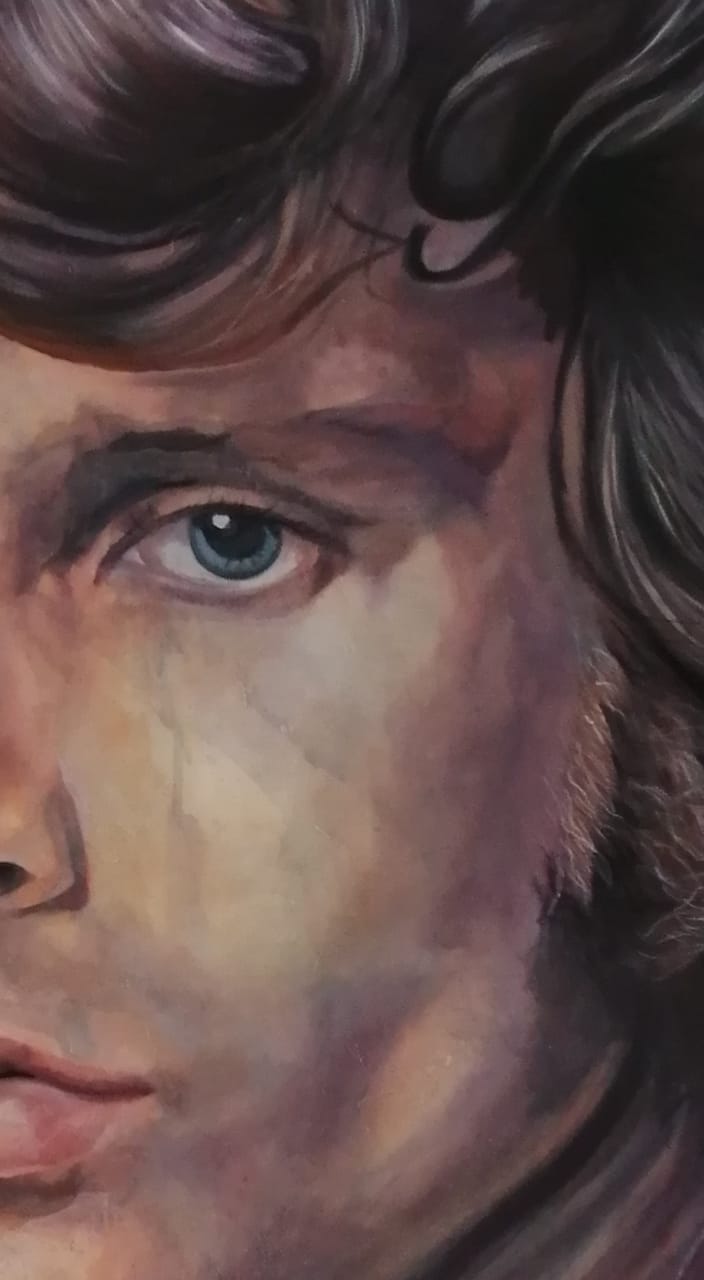 De las fotografías más complicadas de representar en una obra por su simplicidad, buscando una atmósfera hacia un viaje psicodélico, jugando con la acuarela, respetando las luces del rostro y cabello