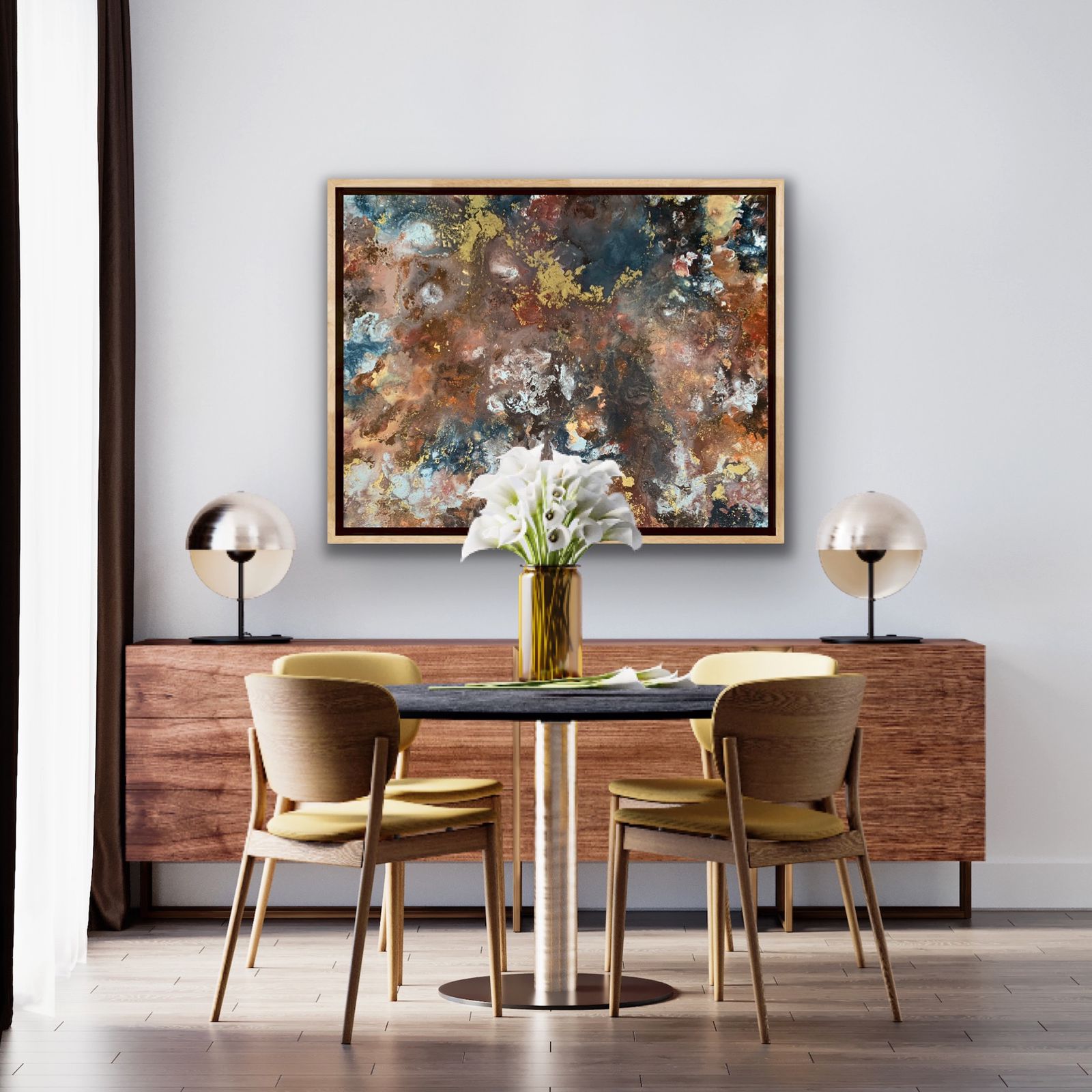 Una vez ubicada la obra en su lugar de exposición, te recomendamos evitar tocarla, no la expongas a cambios bruscos de temperatura y ten cuidado exponiéndola mucho a la luz. Procura mantenerla limpia, libre de polvo y comida y trata de no limpiarla con productos químicos que usarías normalmente en tu casa. Con esto lograrás tener una obra como nueva.