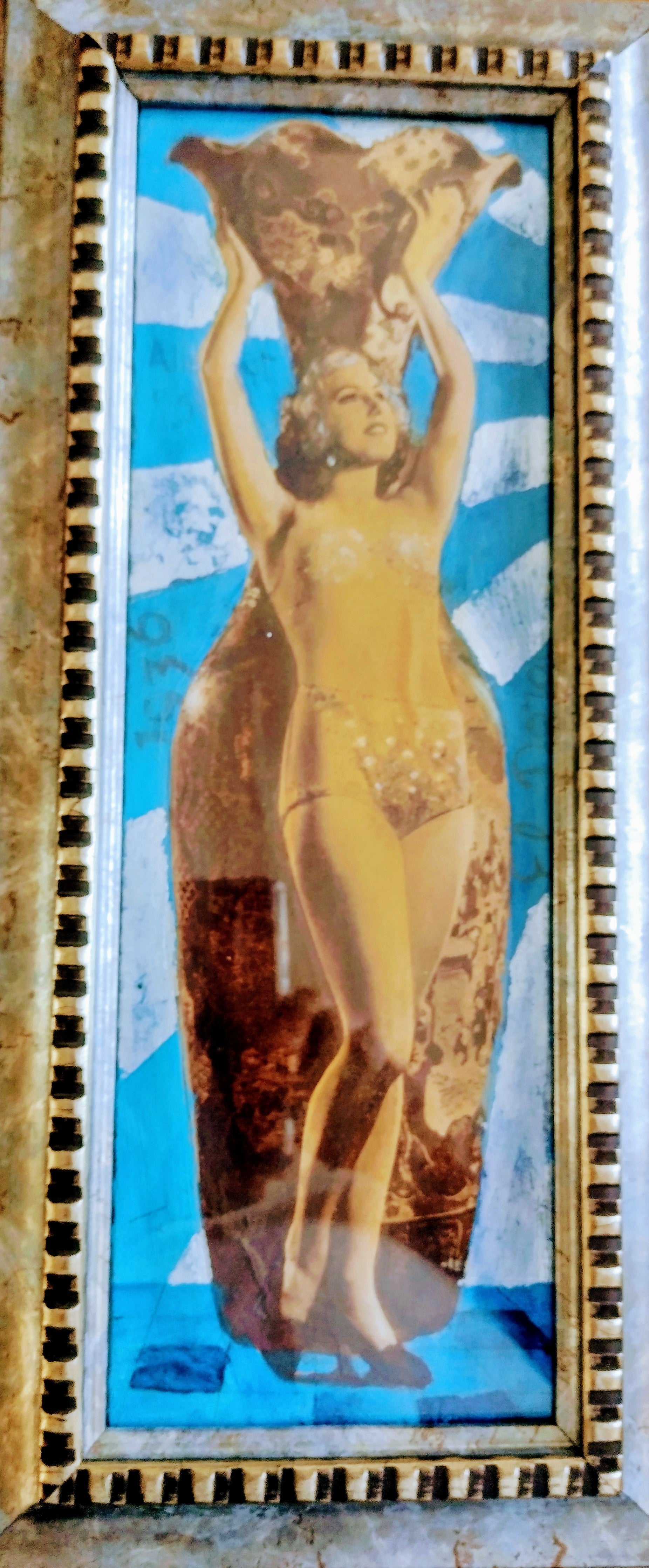 Técnica mixta sobre cartón (collage, acrílico y pan de plata). 40X15cm.