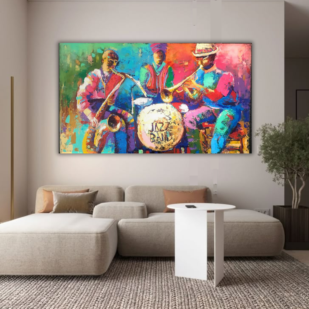 Obra perteneciente a la colección "arte callejero", músicos interpretando jazz en la calle