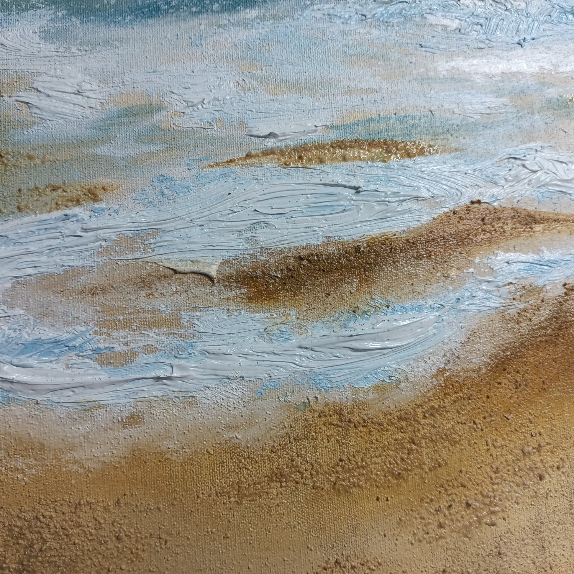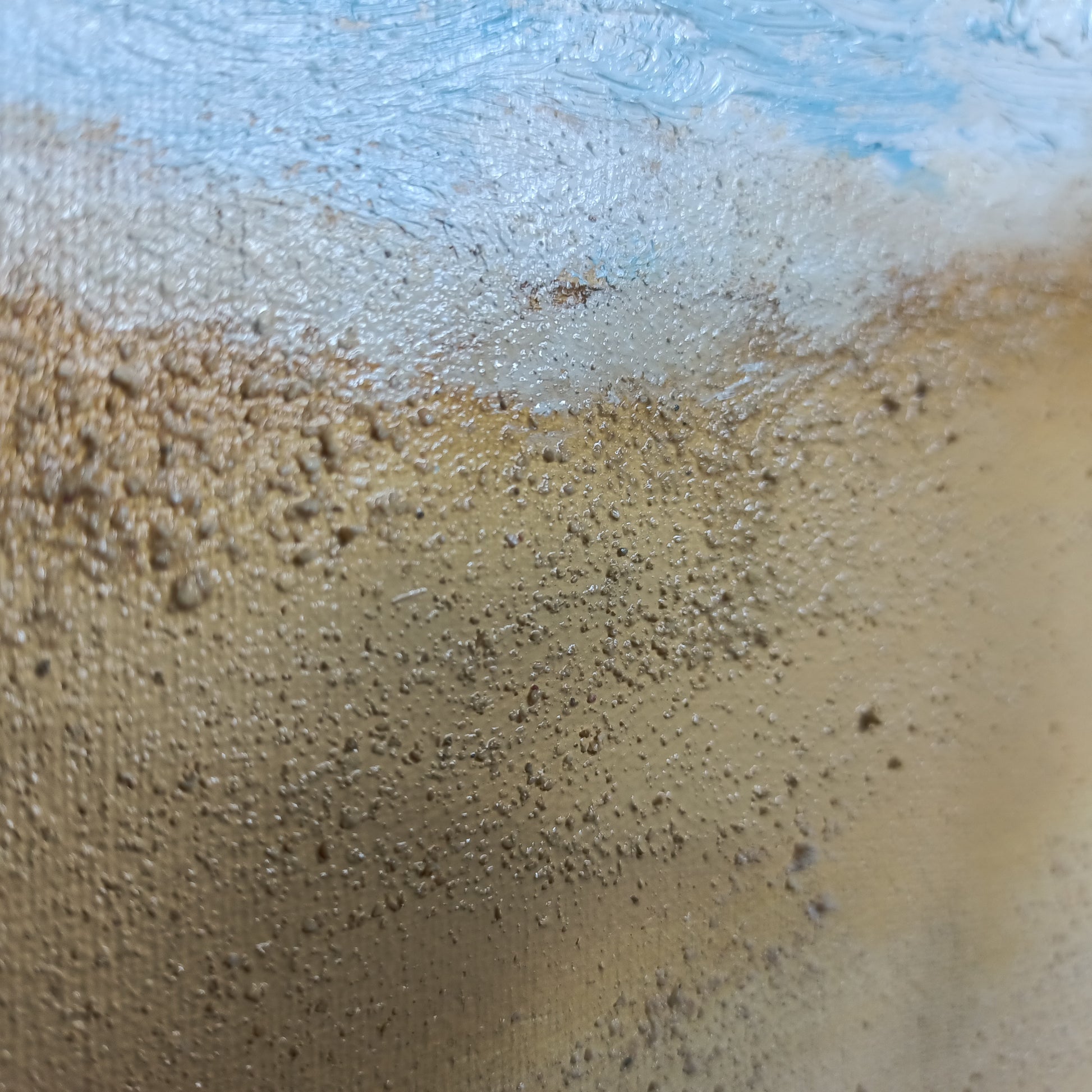(Colección: paisajes de México #1) La costa (2024) es una obra inspirada en las playas mexicanas de Cancún. Cuenta con una técnica de emplastado a espátula e incluye en su creación arena real traída desde una de las playas en las que se inspira la obra. Su proceso de creación fue superior a los cuatro meses. Fue pintada en un bastidor fabricado po el mismo artista.
