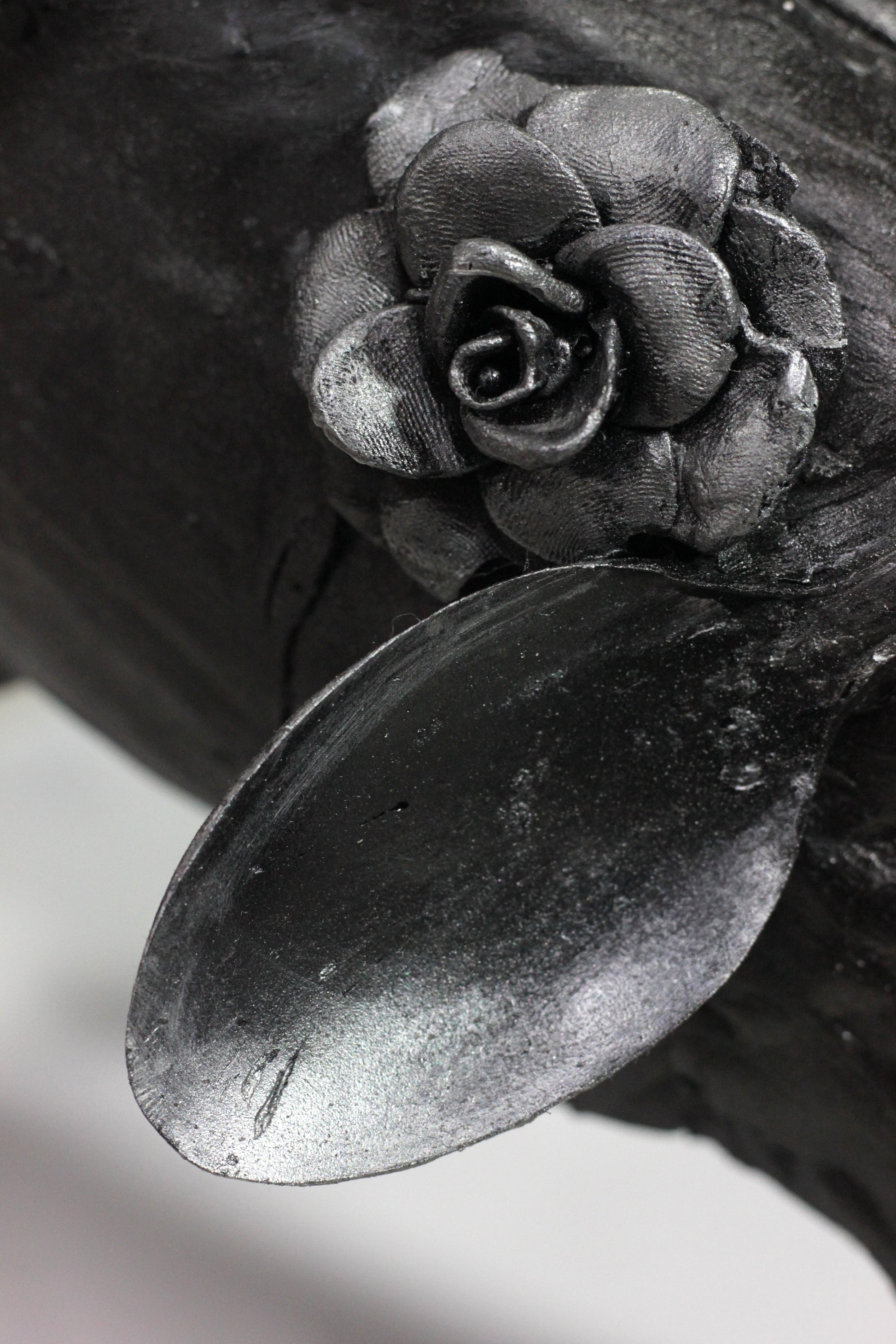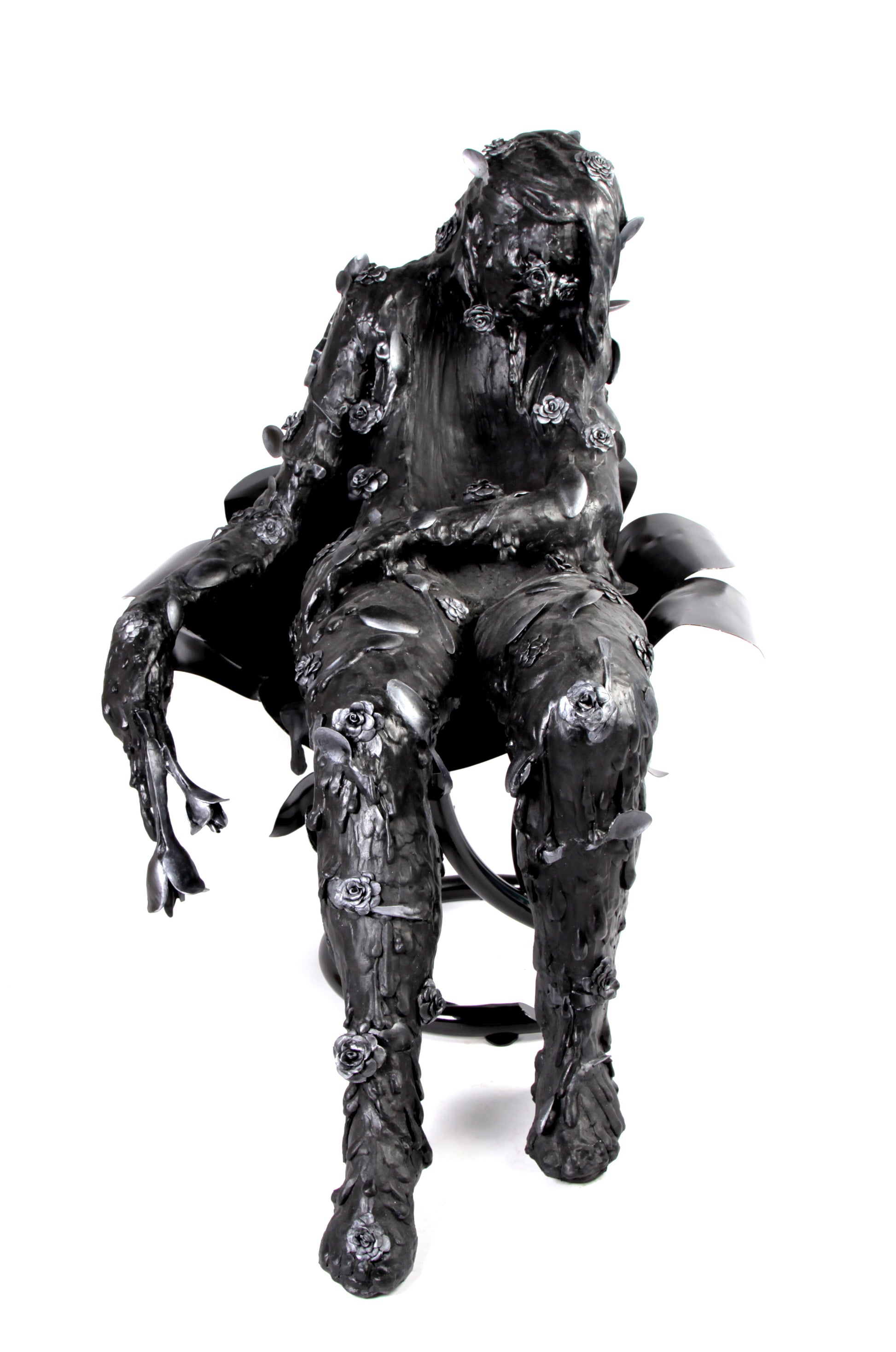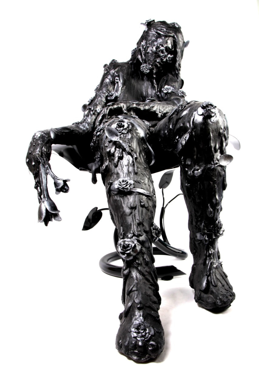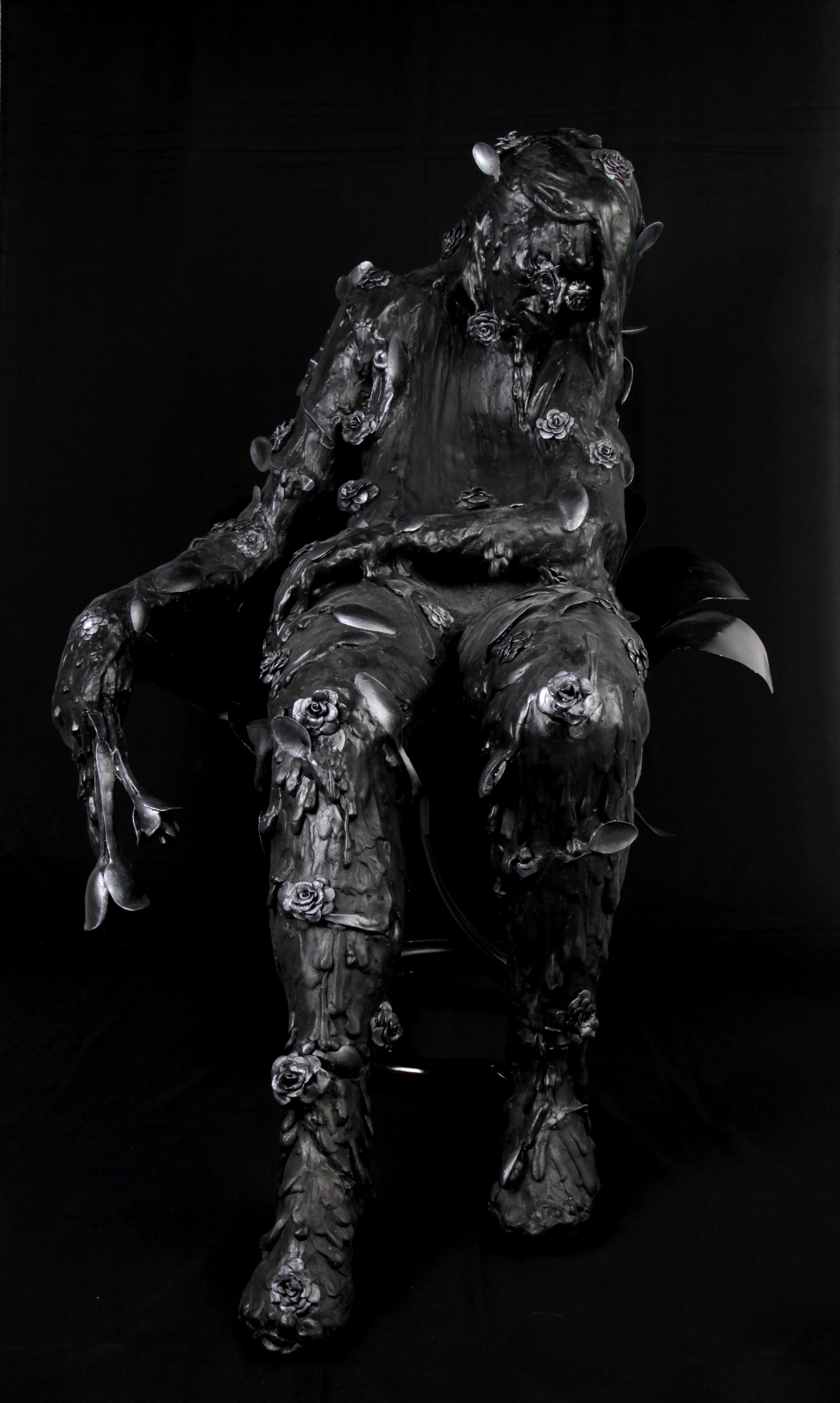 Esta sensación de vacío es representada con esta escultura elaborada con cucharas que forman un cuerpo derretido con un hueco al centro. Al experimentar la muerte de mi abuela, me sentí como si una cuchara gigante hubiera entrado por mi vientre y se hubiera llevado de mis entrañas hasta mi garganta, sin anestesia.