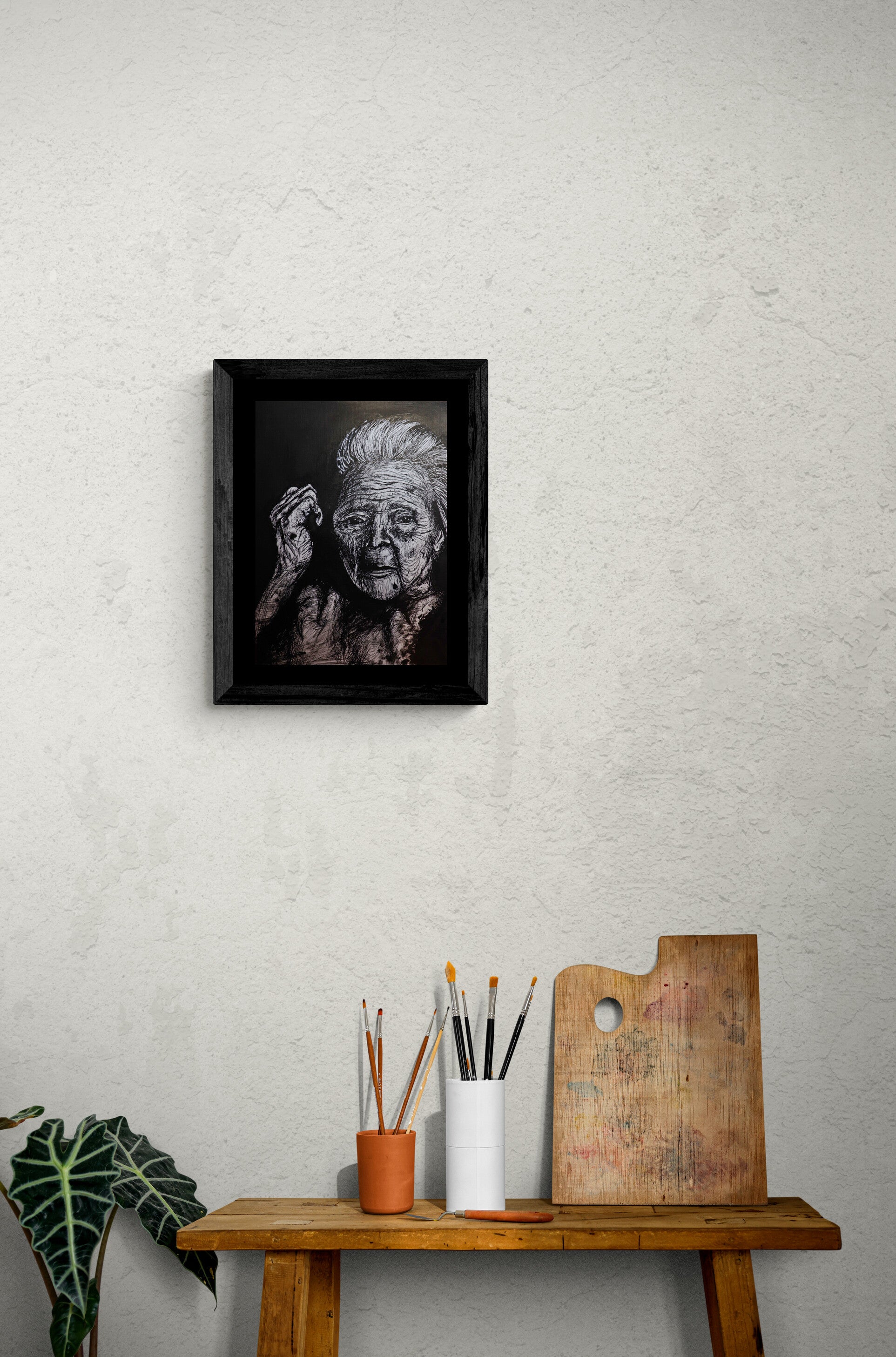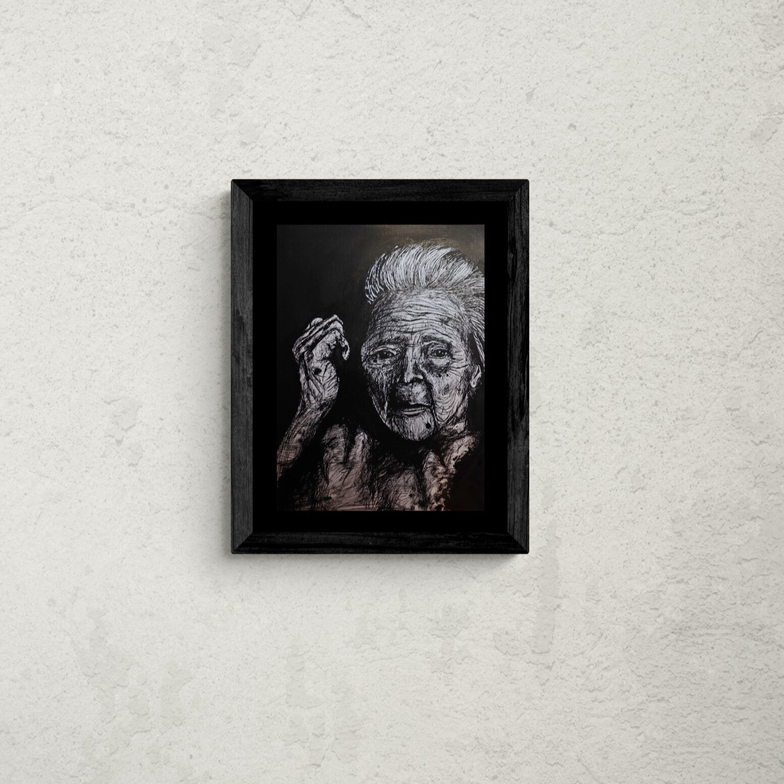 Medidas (30x34x3cm) Con marco negro de madera y vidrio (incluido).