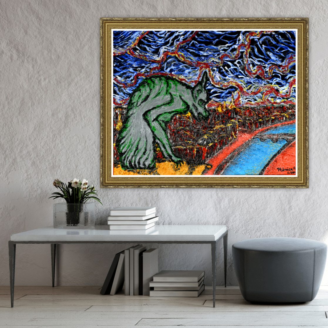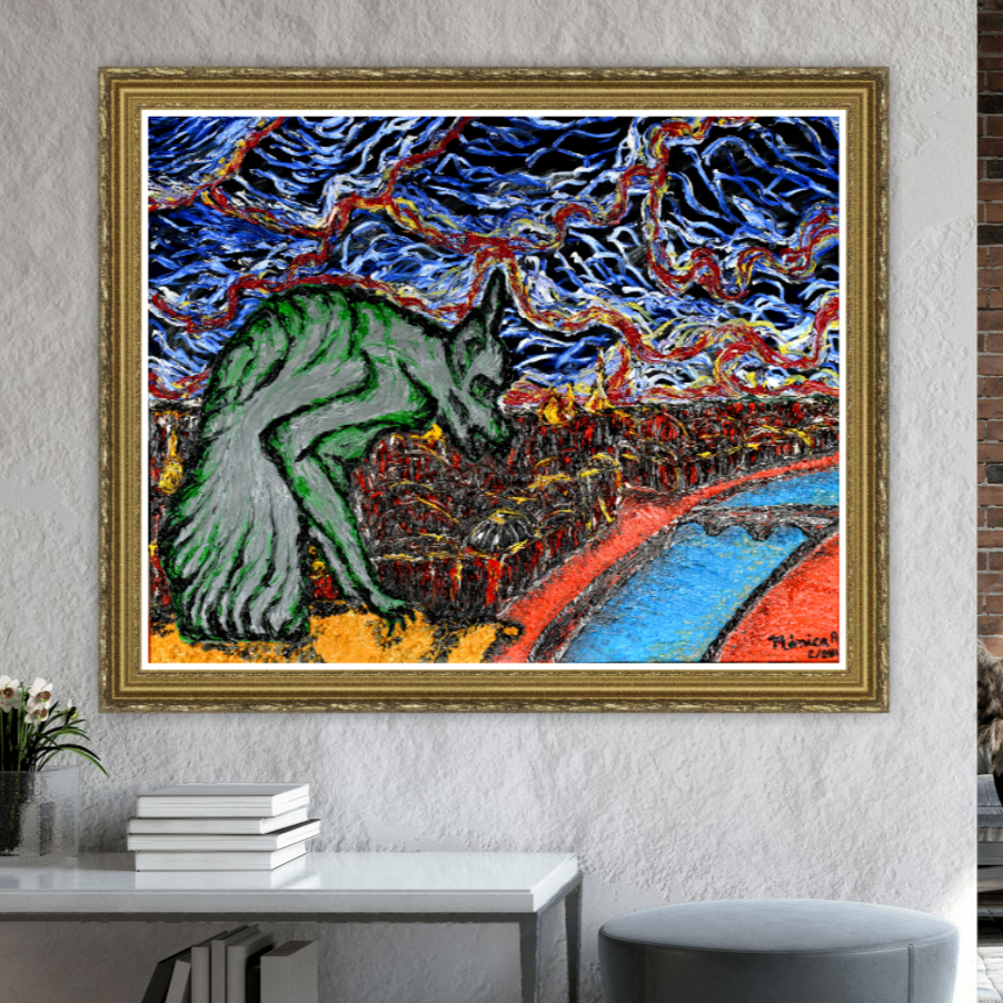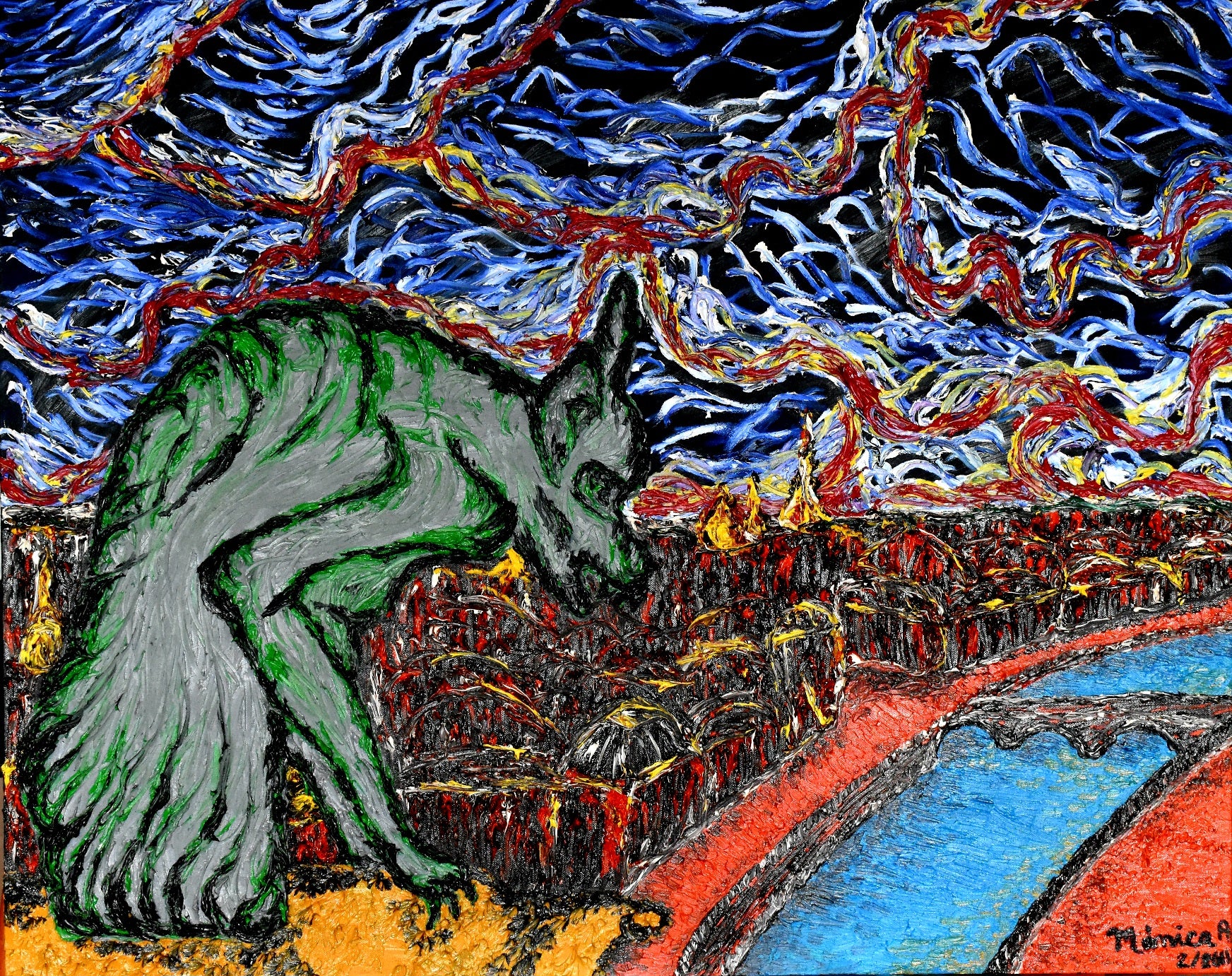 Durante un viaje a París, quedé sorprendida por las Gárgolas, estas figuras siniestras, cuya función es de protección. La capacidad del arte para evocar sentimientos, para conectarnos con dimensiones ocultas de nuestro ser, rara vez se manifiesta con tanta fuerza como en la obra de Mónica Nuñez. Aquí, la figuración abandona cualquier pretensión de realismo en favor de una interpretación emotiva y distorsionada de la realidad, buscando transmitir una verdad más profunda que la mera representación visual.