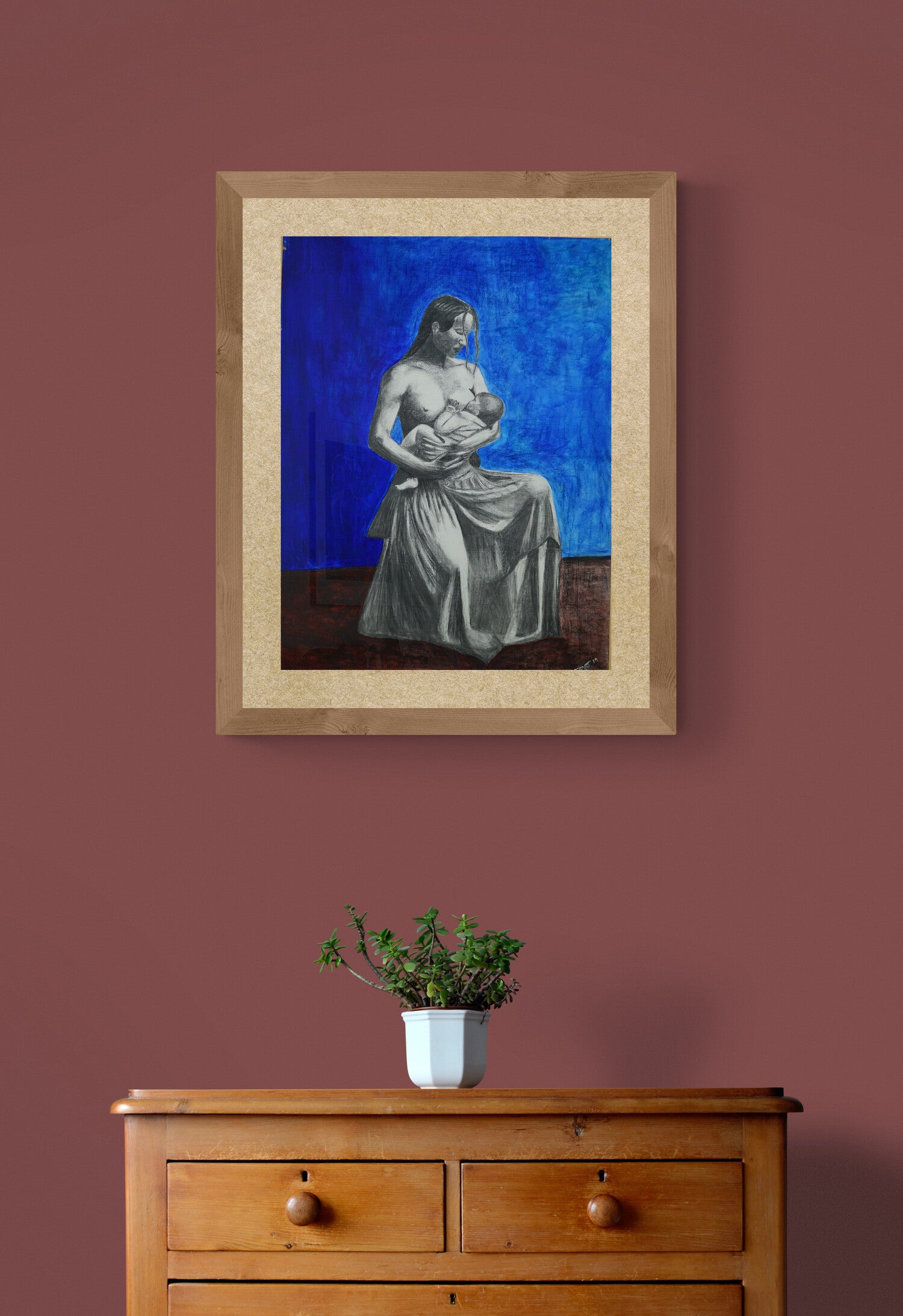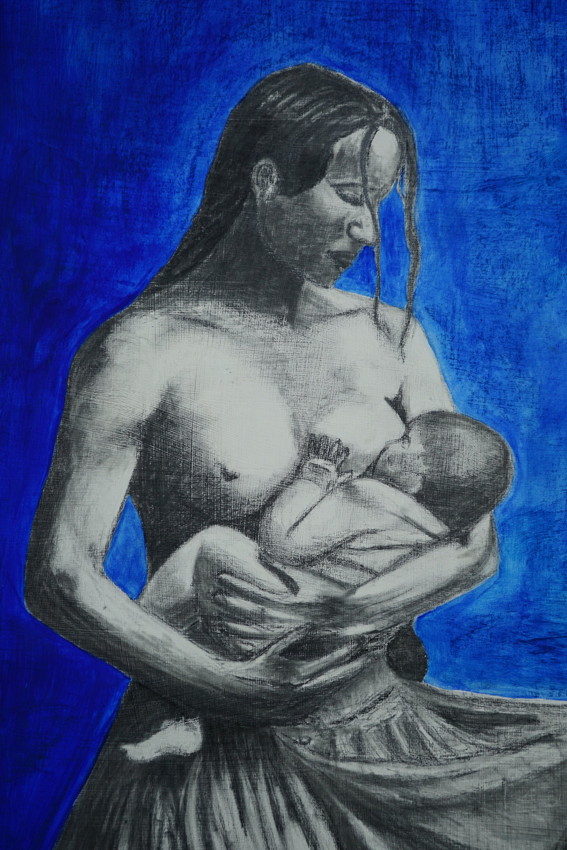 Este dibujo sombreado representa el amor hacía su hijo y el alimento que le proporciona de su cuerpo, es una belleza.