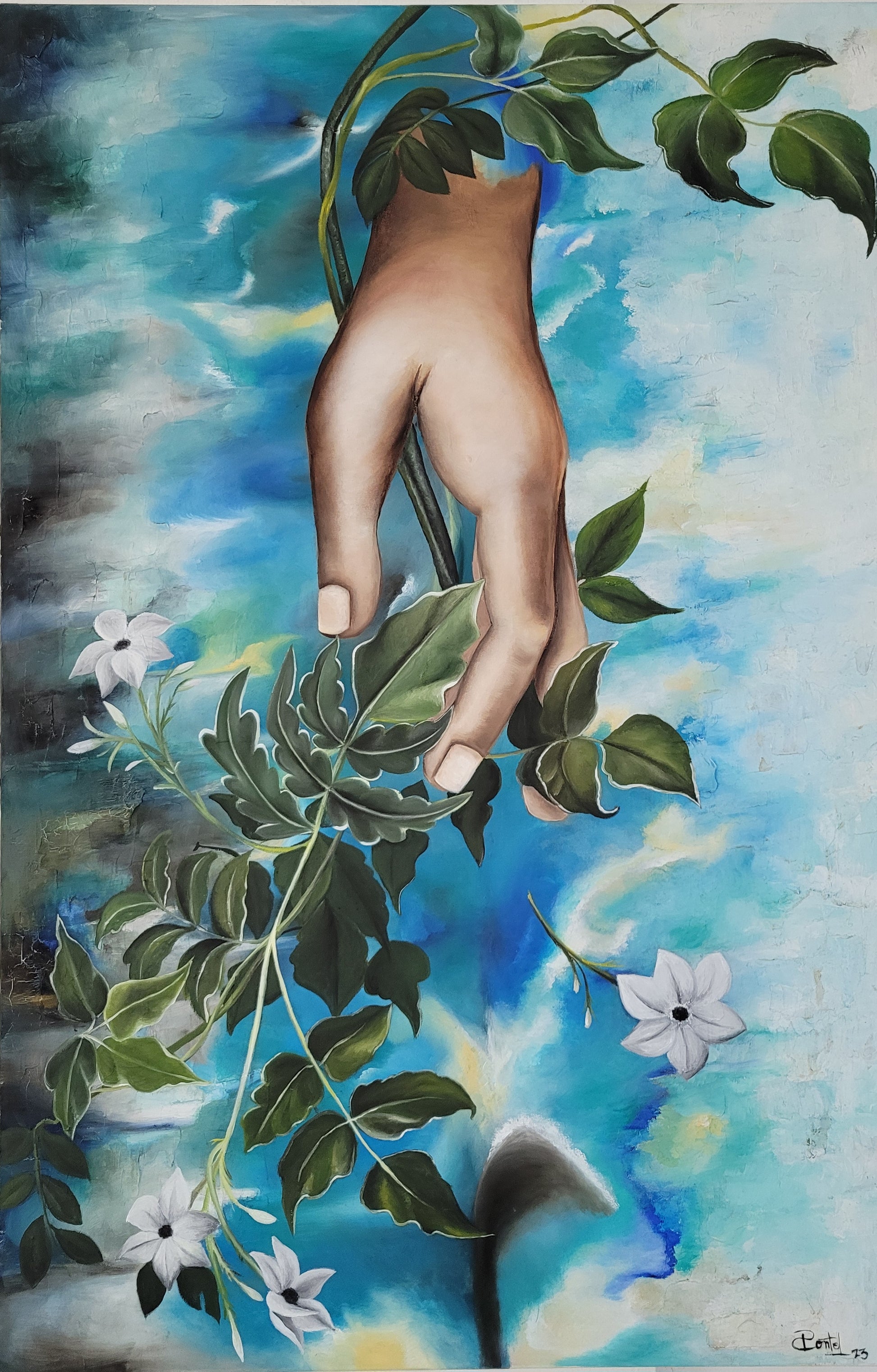 Esta obra es un detalle del cuadro de Leonardo Davinci, Leda y el cisne en un fondo abstracto que fue realizado con anterioridad. Como los demás cuadros que pertenecen a esta nueva colección se mezcla lo místico con lo abstracto y y lo figurativo dando así forma a un nuevo tipo de surrealismo.