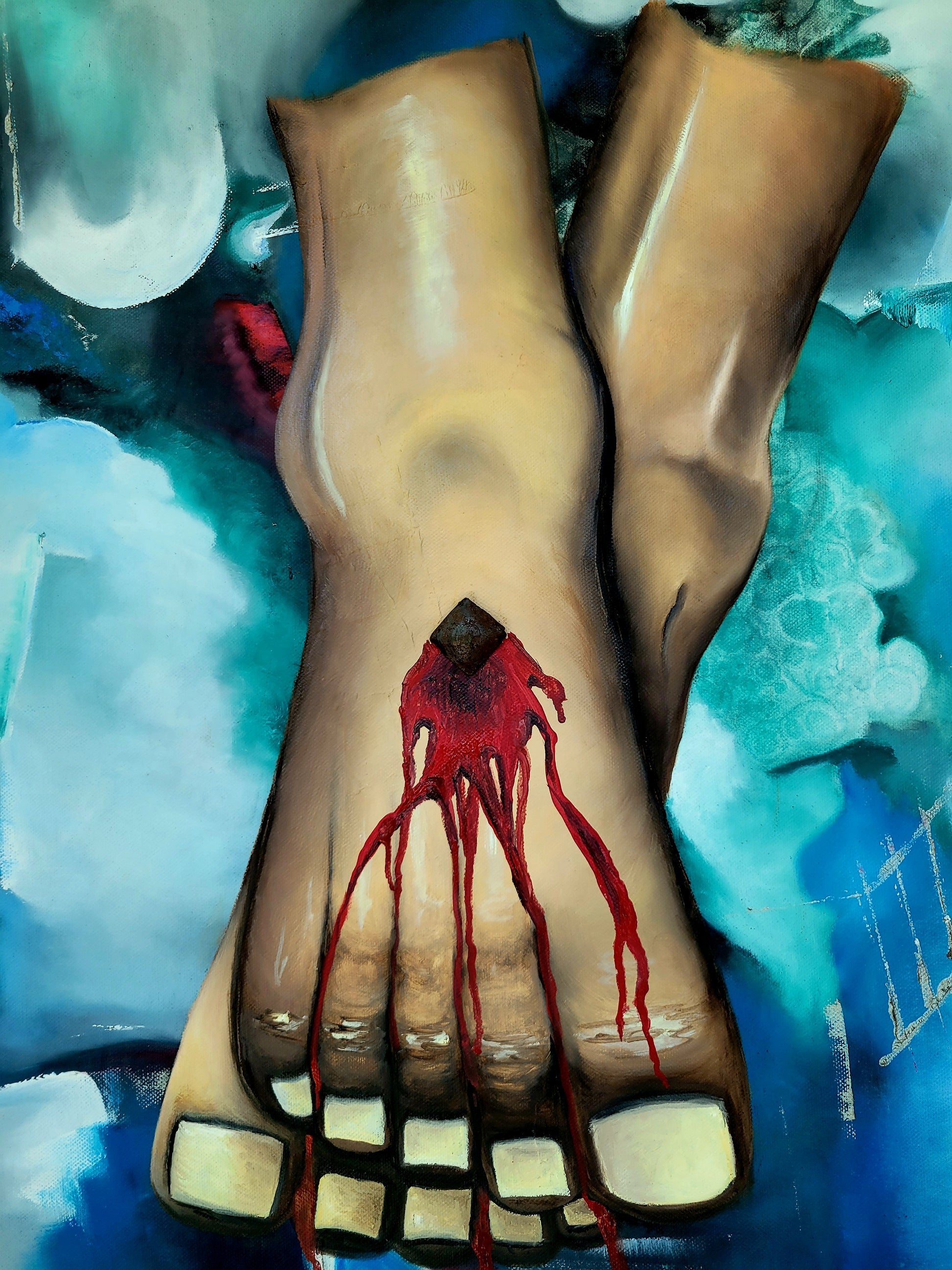 Es una obra que representa el dolor de no poder avanzar, se sentirse atado, clavado en un punto donde ya duele el estancamiento, pero después de este dolor viene esa movilización que hace que crezcas que las heridas sanen para poder llegar a esa plenitud que todos buscamos a esa meta, dónde no siempre el camino es fácil. También representa la pasión de Cristo.