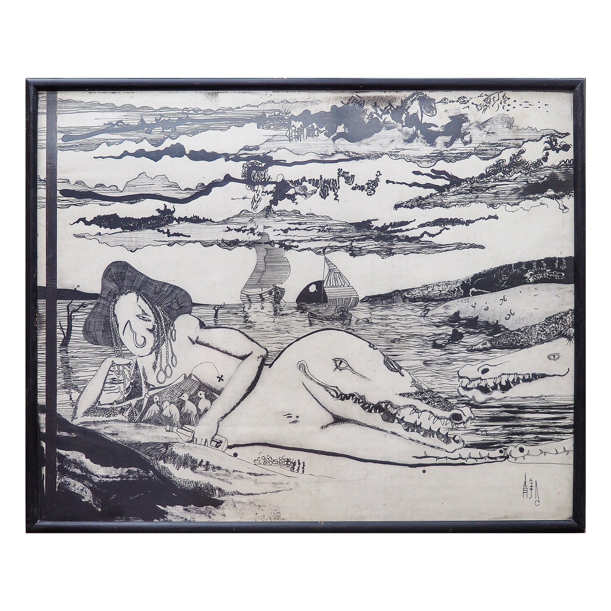 la vida de la pirata pende entre cuerdas para ahorcados y anclas de barcos . sus piernas se han convertido en cocodrilos. protege aves en su pecho. tiene un mapa del tesoro tatuado en su corazòn.