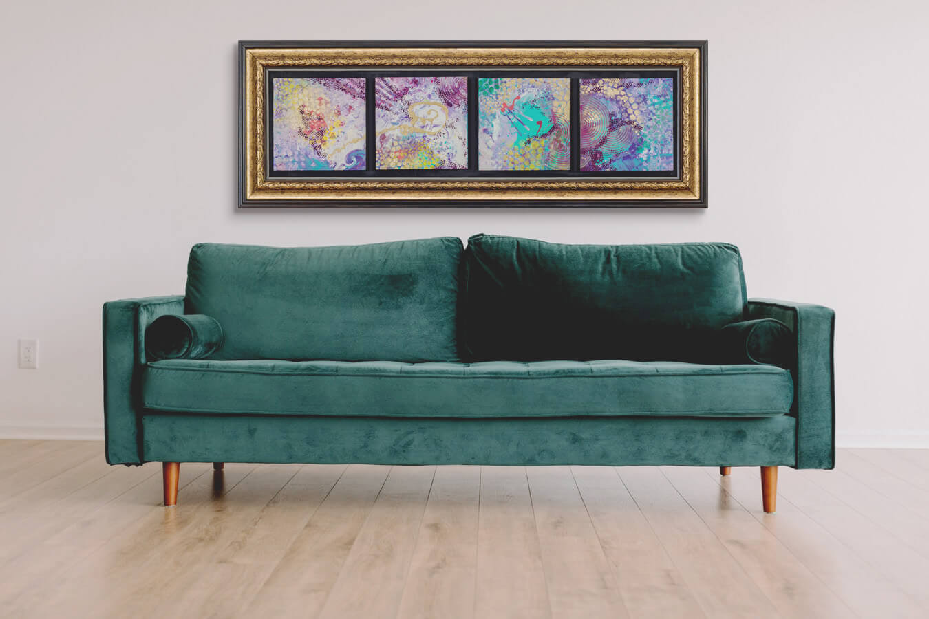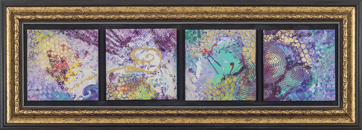 Imagen que fácilmente nos remonta a la infancia. Su color, movimiento y transparencia casi nos permite vivir aquellos momentos. Cuadríptico con deslave del color. Marco de madera realizado artesanalmente.