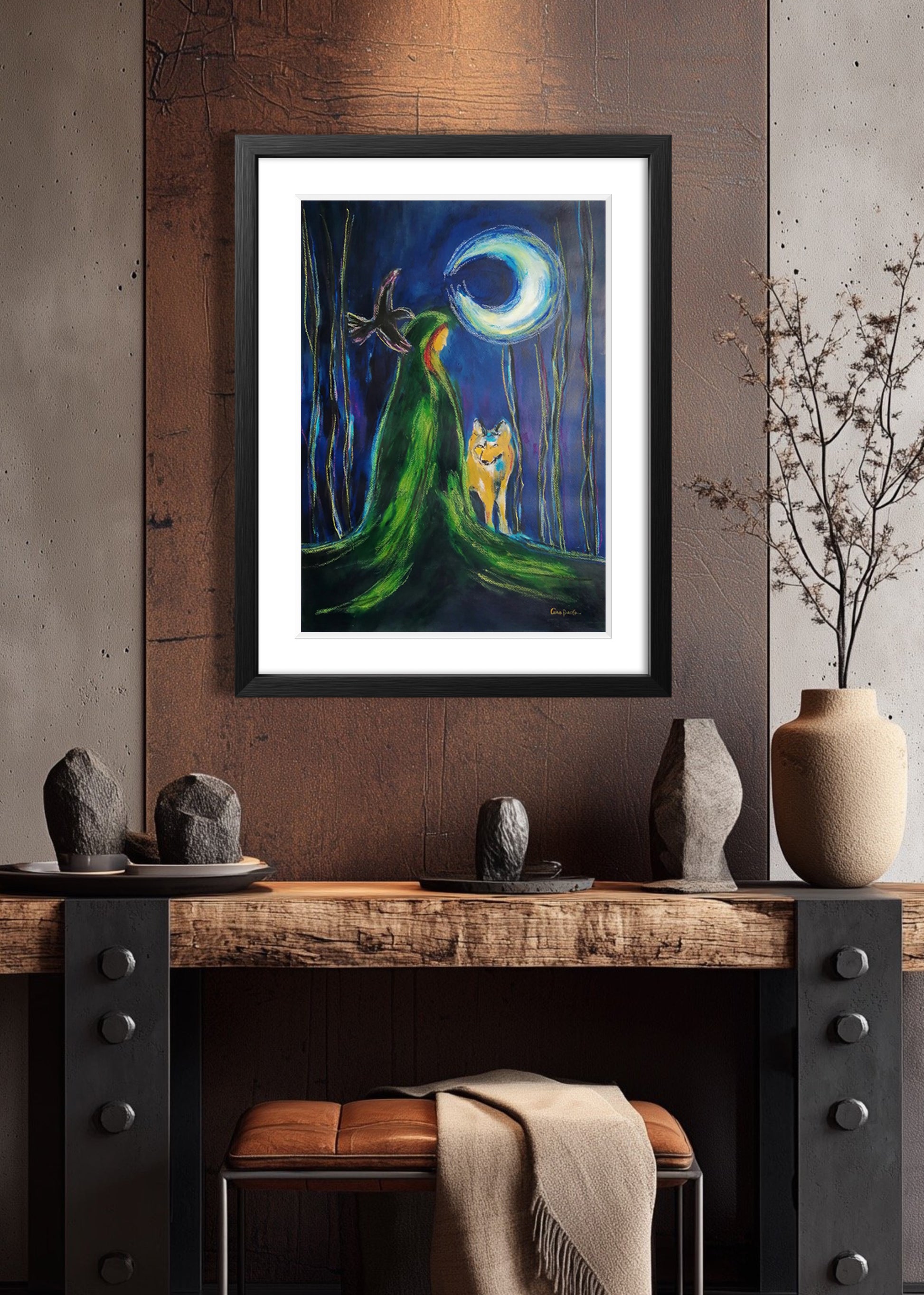 Acrílico y pastel seco sobre papel de algodón, enmarcado