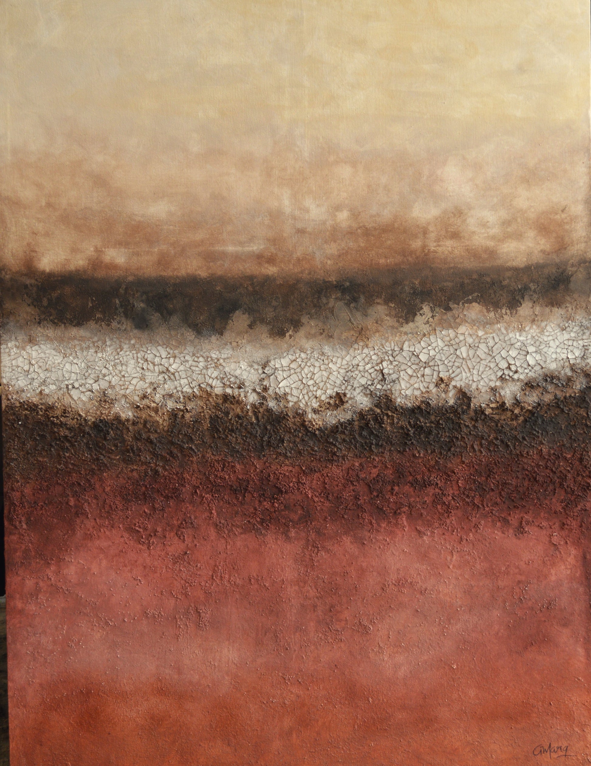 "La tierra frágil y eterna" trata de expresar las capas fuertes que se forman con las luchas a las que se enfrenta nuestra tierra, pero en alguna de ellas la sorprende la fragilidad, al igual que sucede con el ser humano...