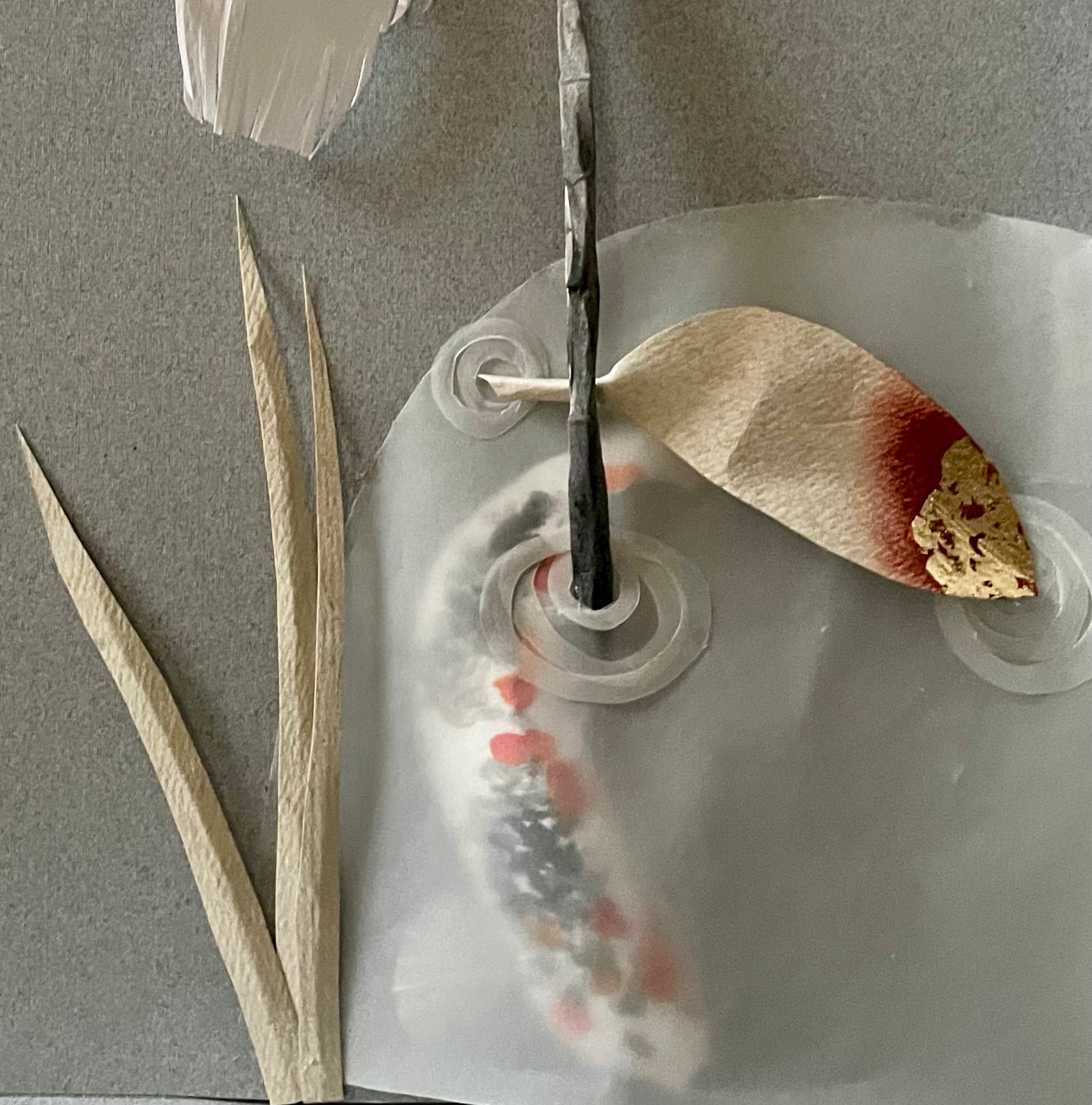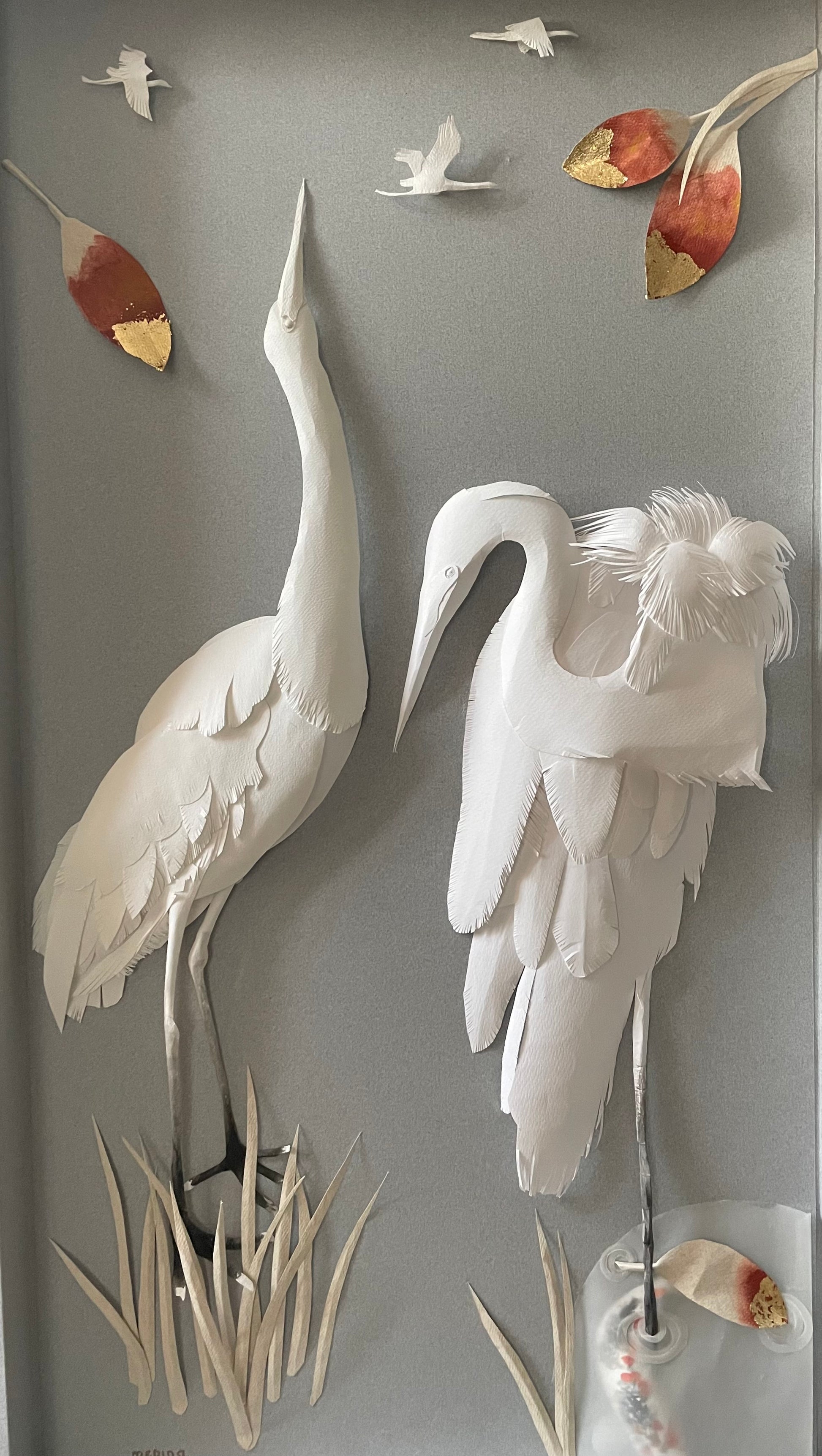 "Las Garzas" es una obra de arte cautivadora que fusiona la delicadeza del papel con la maestría artística para crear una representación vívida y poética de la naturaleza. La combinación de las garzas, el pez koi y el entorno acuático proporciona una experiencia visual rica y evocadora que seguramente dejará una impresión duradera en quienes tienen el privilegio de contemplar esta obra maestra.