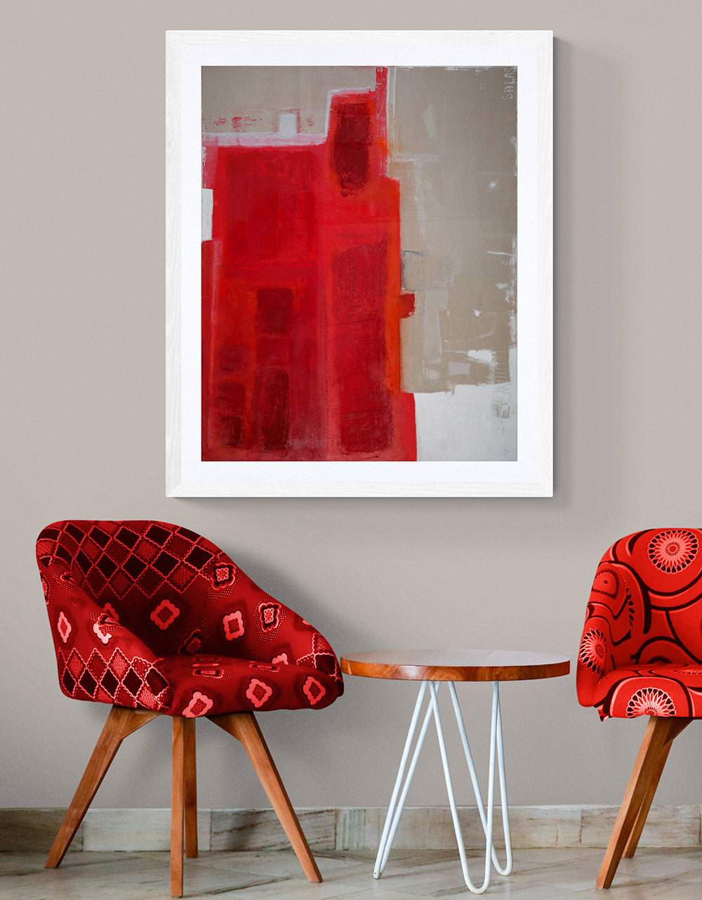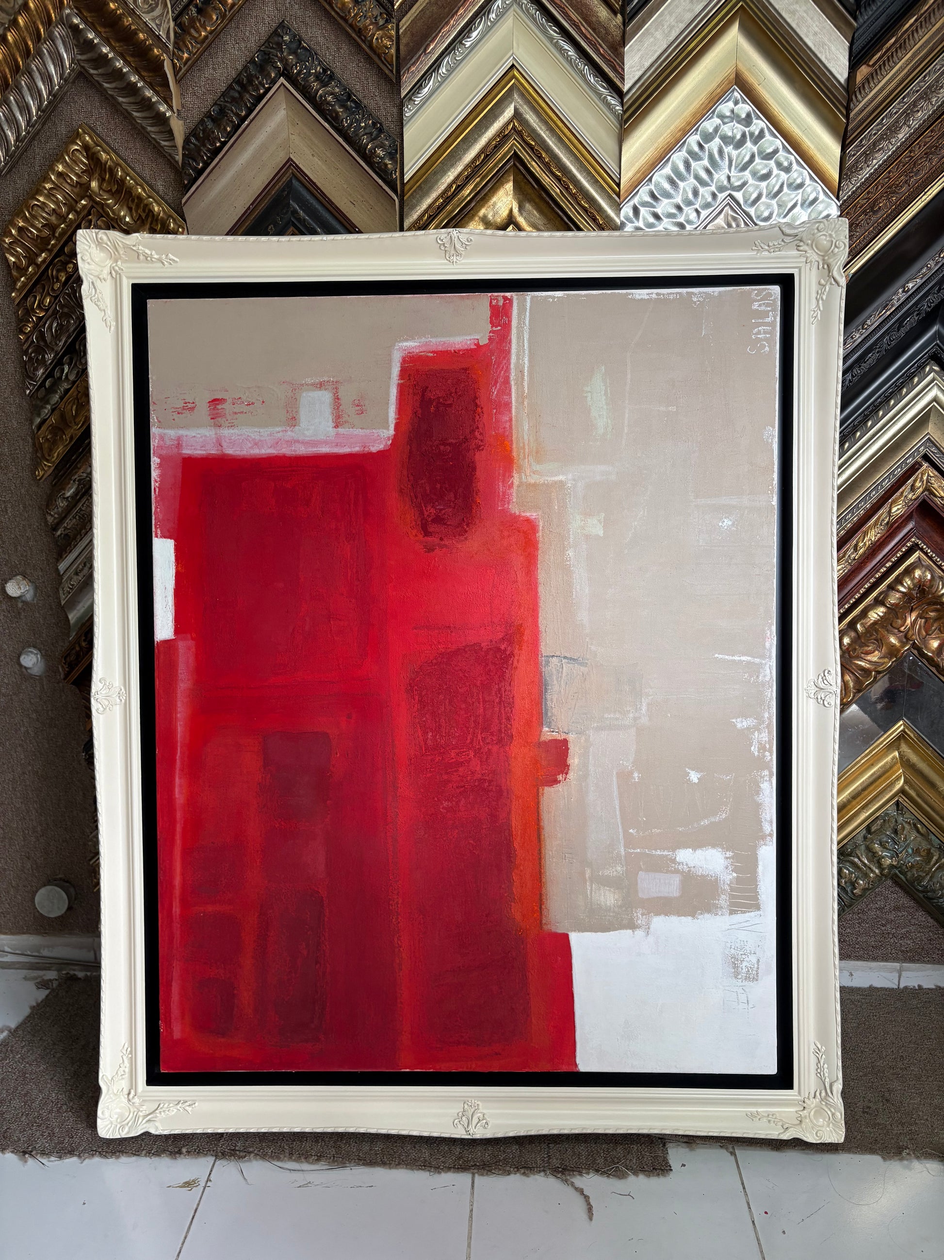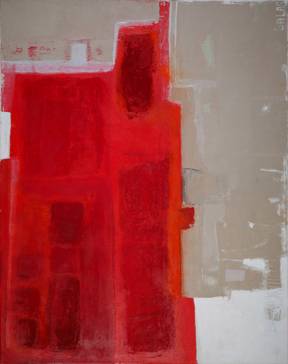 El presente cuadro emerge como un estallido visceral, dominado por la intensidad del rojo brillante, este tono no es meramente un color, sino una declaración. Habla de vida y sangre, de amor y furia, de lo sagrado y lo profano. Es un rojo que palpita como un corazón expuesto, latiendo entre luces y sombras.