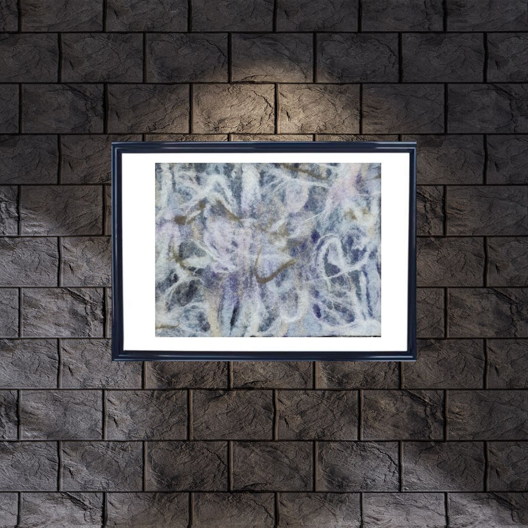 Textil de lana creado bajo la técnica de fieltrado húmedo intervenido con acrílicos.