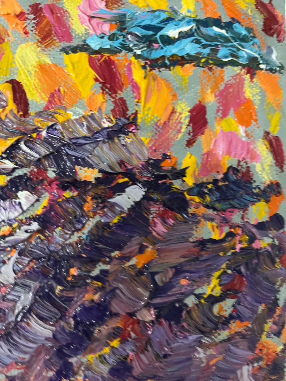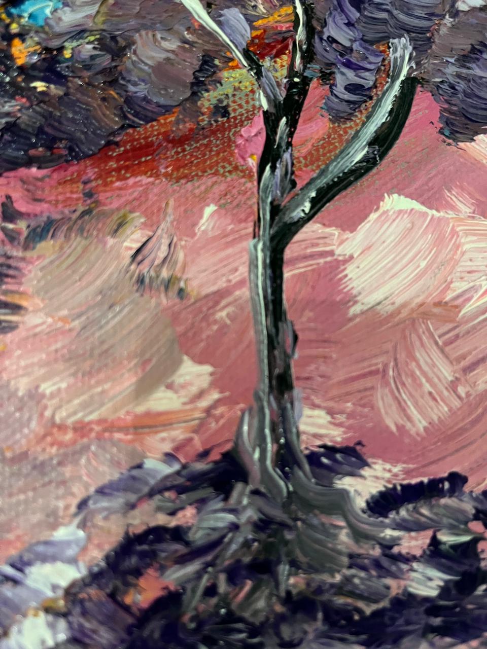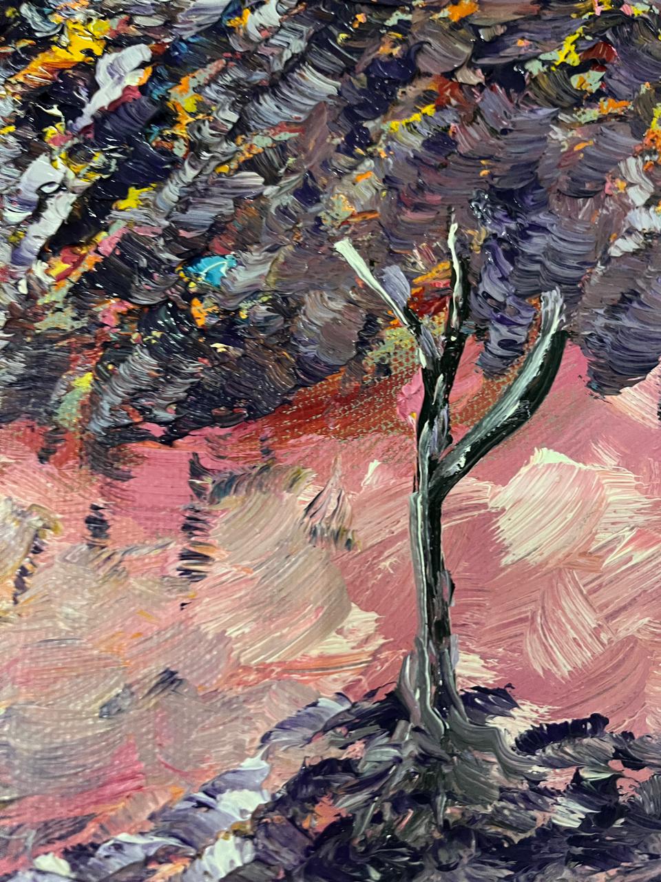 Esta obra es de mis favoritas, ya que marca un antes y un después en cuanto a mi estado emocional, la paleta de colores es distinta a mi trabajo anterior y la estabilidad en cuanto al concepto se refleja en "Lila Nadir"