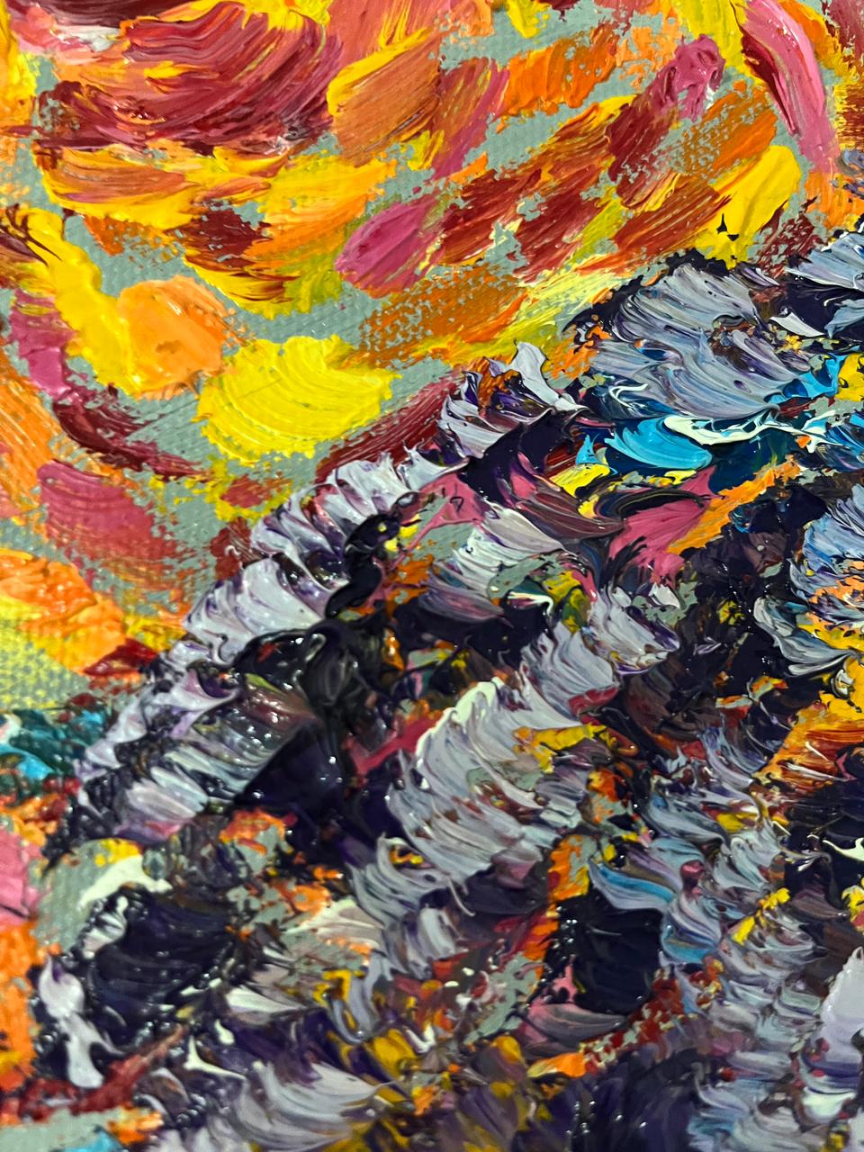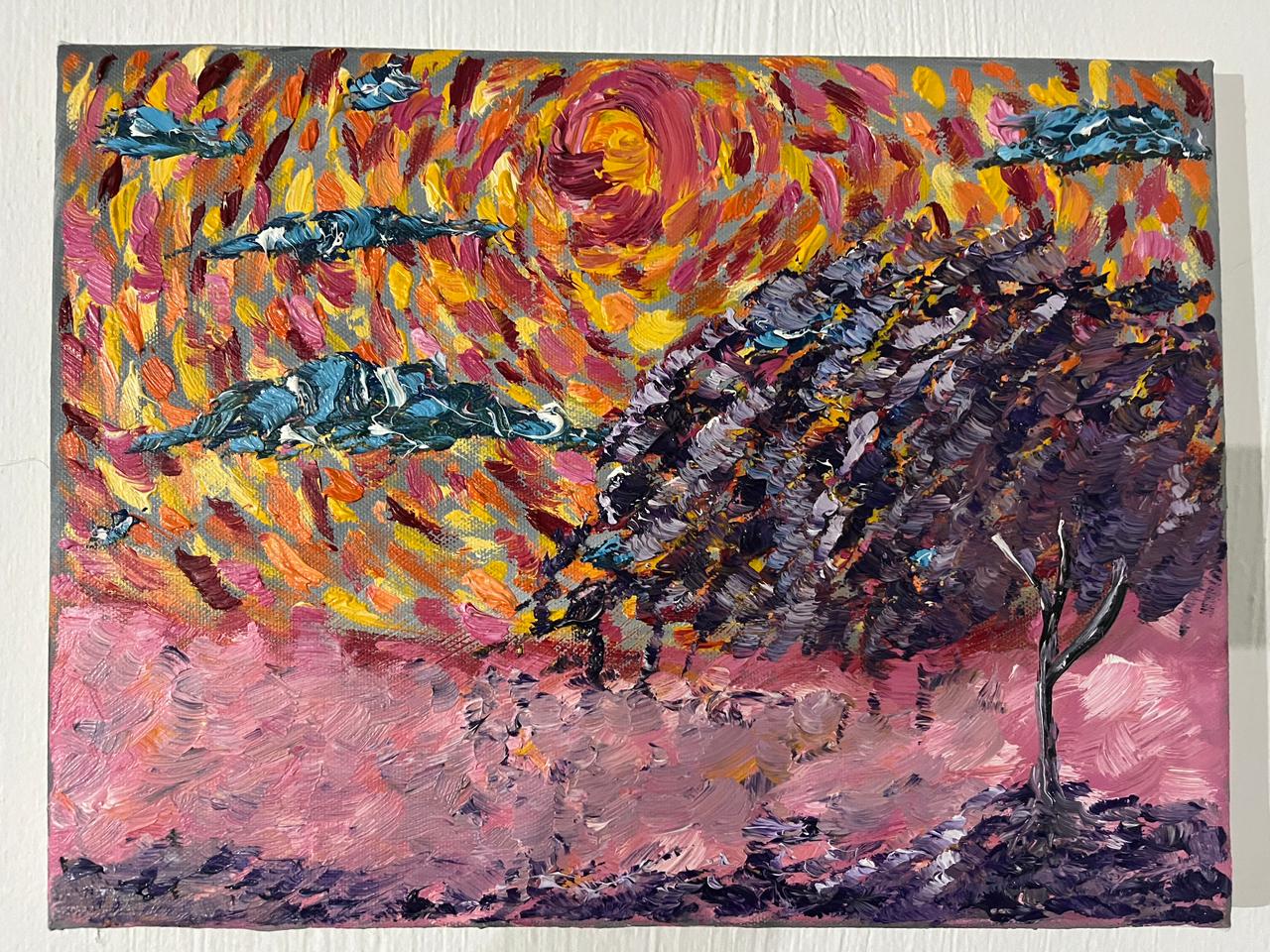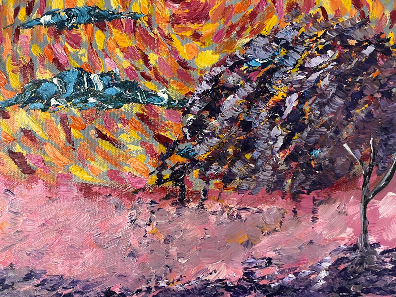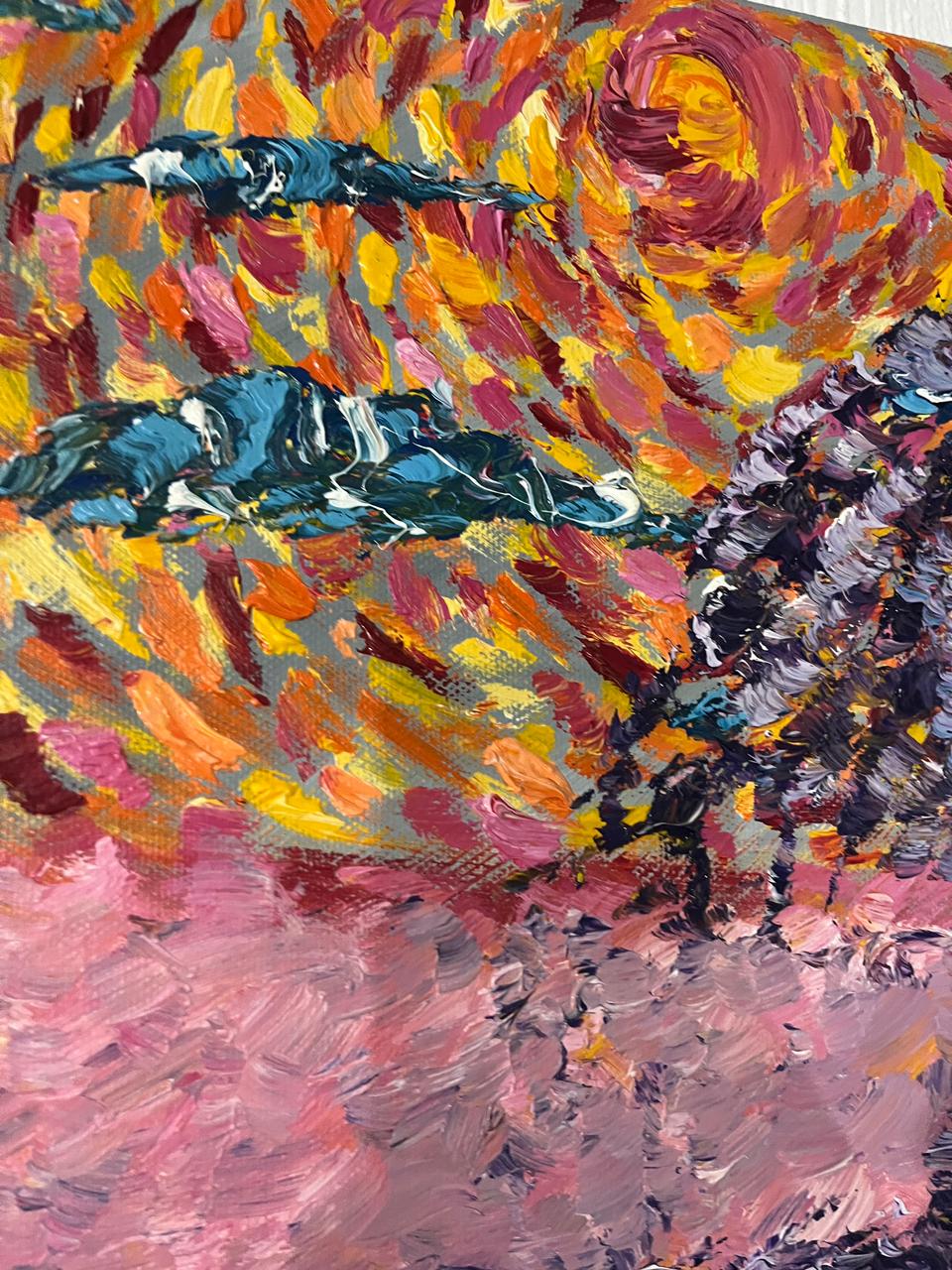 Esta obra es de mis favoritas, ya que marca un antes y un después en cuanto a mi estado emocional, la paleta de colores es distinta a mi trabajo anterior y la estabilidad en cuanto al concepto se refleja en "Lila Nadir"