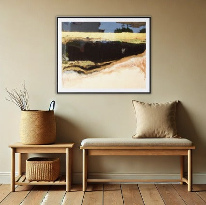 Una obra que entrelaza colores y texturas en capas fluidas, evocando el paso del tiempo y los recuerdos grabados en paisajes abstractos.