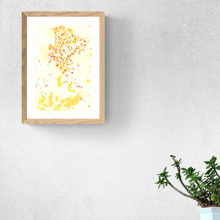 Una vez ubicada la obra en su lugar de exposición, te recomendamos evitar tocarla, no la expongas a cambios bruscos de temperatura y ten cuidado exponiéndola mucho a la luz. Procura mantenerla limpia, libre de polvo y comida y trata de no limpiarla con productos químicos que usarías normalmente en tu casa. Con esto lograrás tener una obra como nueva.