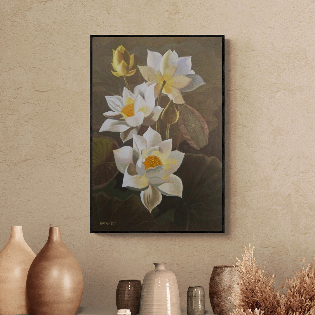 Esta obra fue inspirada al crear una obra abstracta "mis entrañas" la cual me ayudo a sanar el alma, en la obra pocas personas podían apreciar una flor, que posteriormente reconocí como lirio acuático, me relaciono con dicha flor por toda la connotación que nos relaciona como es que nacimos en lugares remoto pero florecemos y nos hacemos notar con nuestra belleza espiritual.