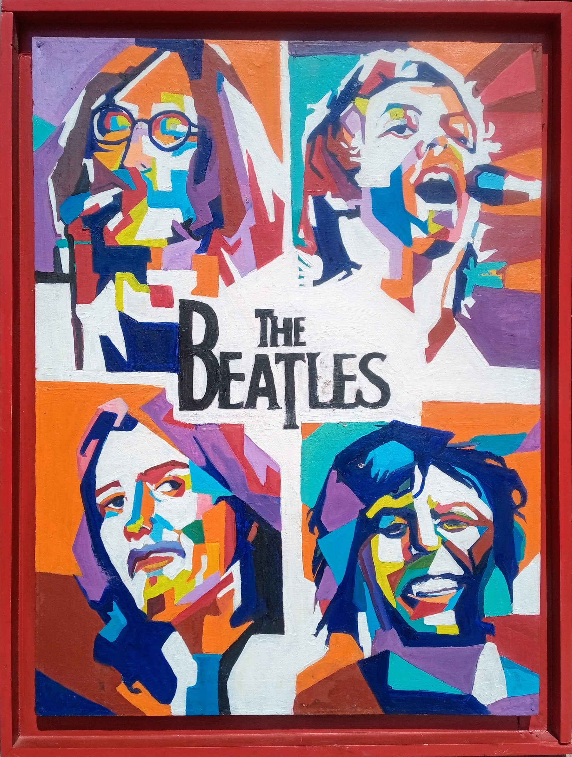 La obra retrata al grupo Beatles con el estilo Arte-Pop con colores vibrantes y efectos cubistas. Es una obra muy alegre que resalta la importancia de una de las bandas mas importantes del S.XX.