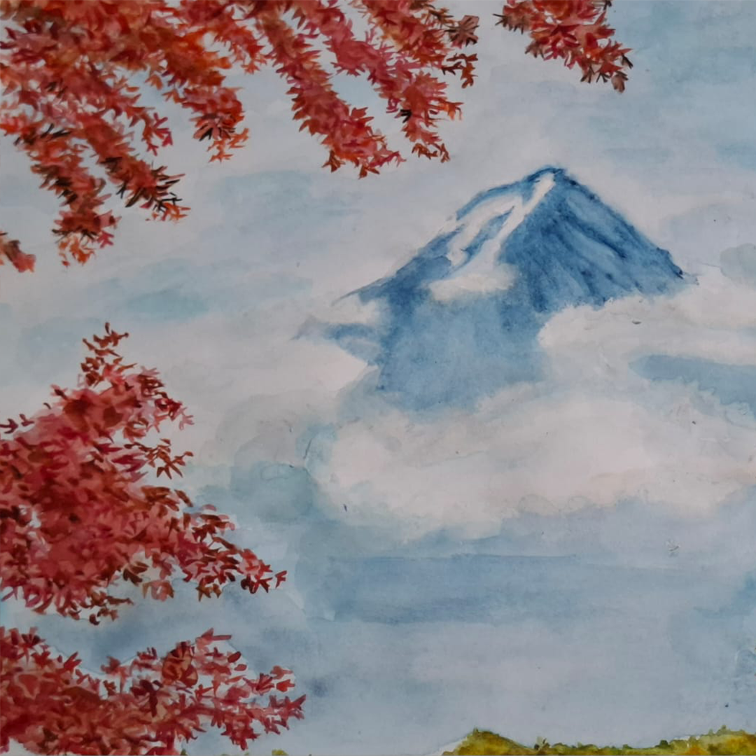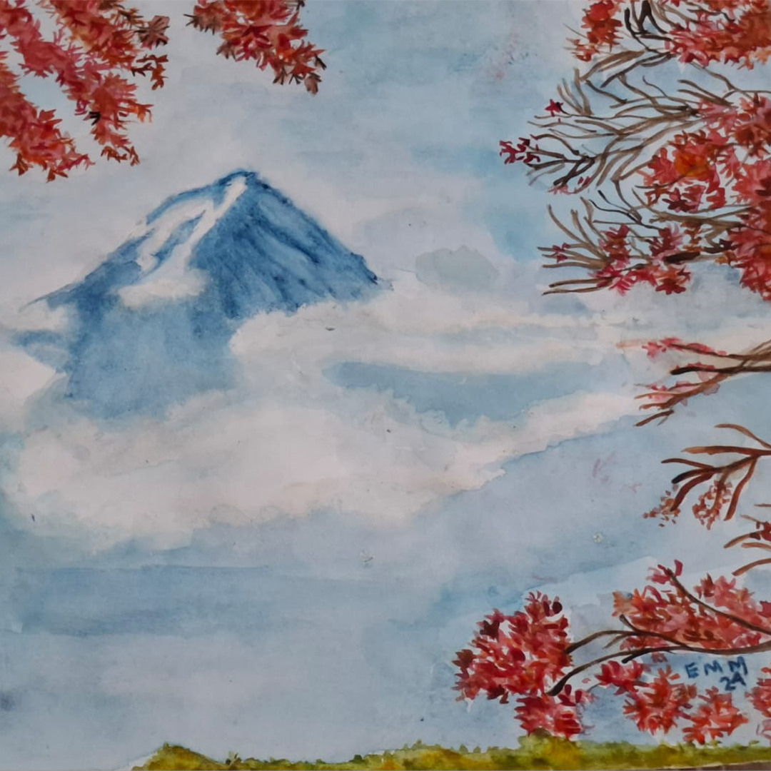 Quise pintar los cerezos Porque estos árboles me gustan mucho. En Japón se ven hermosos paisajes, es una atracción que tienen los japoneses