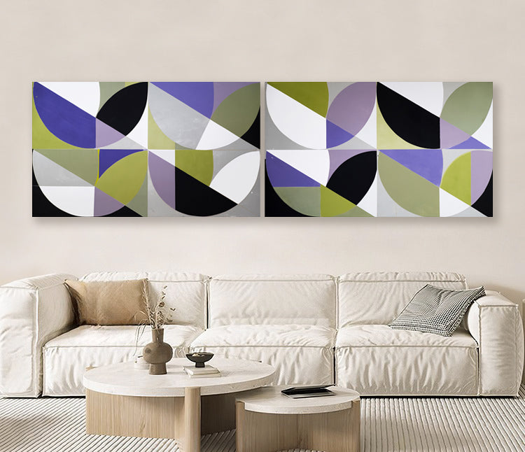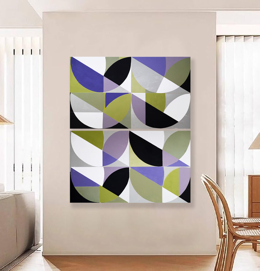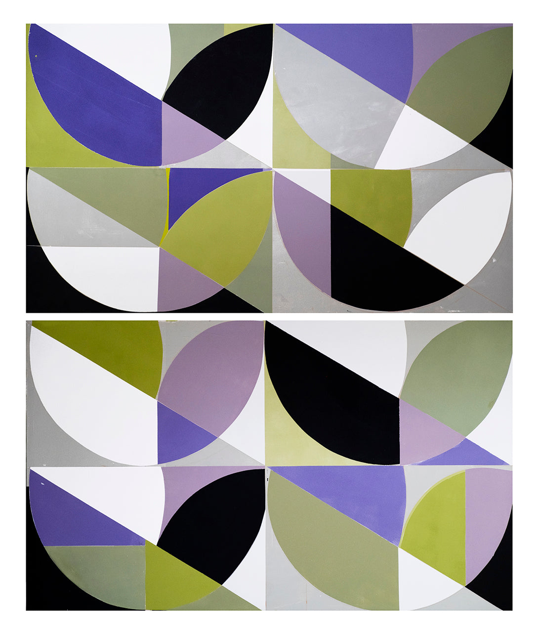 Este díptico, el cual se puede instalar en forma vertical u horizontal,es parte de una serie inspirada en elementos de la naturaleza , en este caso, botánicos,elementos como color, diseño, estructura , etc mediante el lenguaje de la abstracción geométrica.