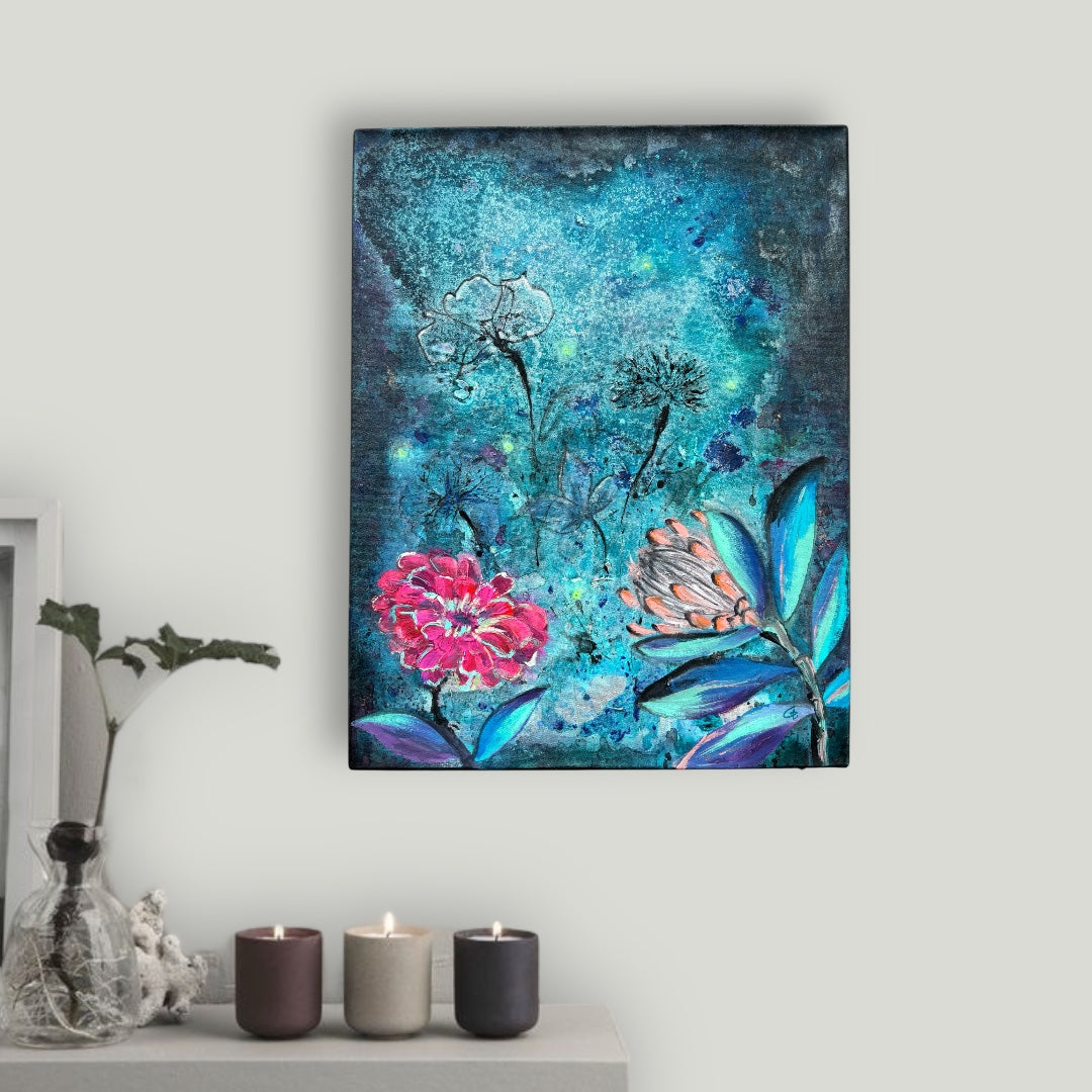 En la profundidad de la noche, cuando todo parece en calma, surgen pequeños destellos que adornan la oscuridad, luciérnagas es una pieza que captura la energía sutil y mágica de estos seres luminosos, con su pequeño resplandor palpitante y su danza aérea, nos invita a reflexionar sobre la capacidad de brillar incluso en la penumbra.