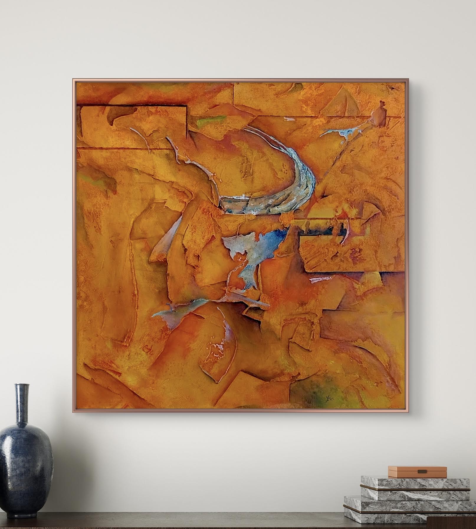 No hay una separación tajante, todo parece latir en la luz y brillar al mismo tiempo. Esta fluidez también se refleja en su uso del color, donde los tonos vibrantes se mezclan en una danza de contrastes y sutilezas, generando atmósferas que nos conducen a una experiencia sensorial.