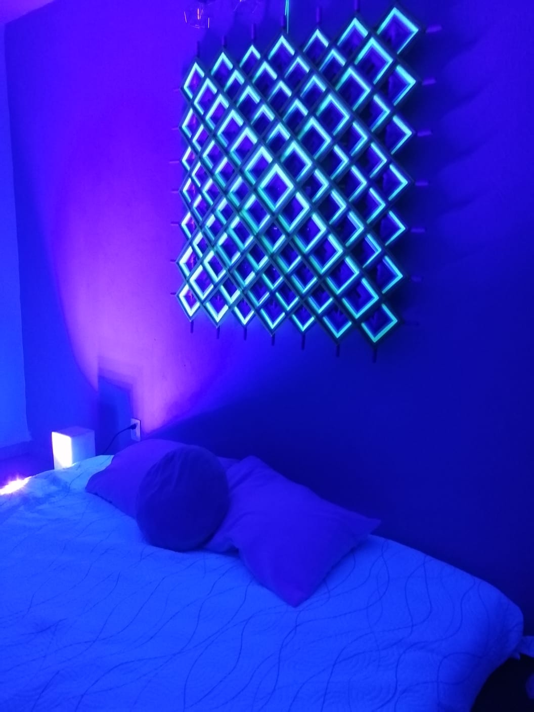 Mandala de telido Tibetano hermoso por la combinación de colores, cambian los colores con la luz negra en la noche. Se puede hacer replica mas pequeños tamaños o mas grandes.