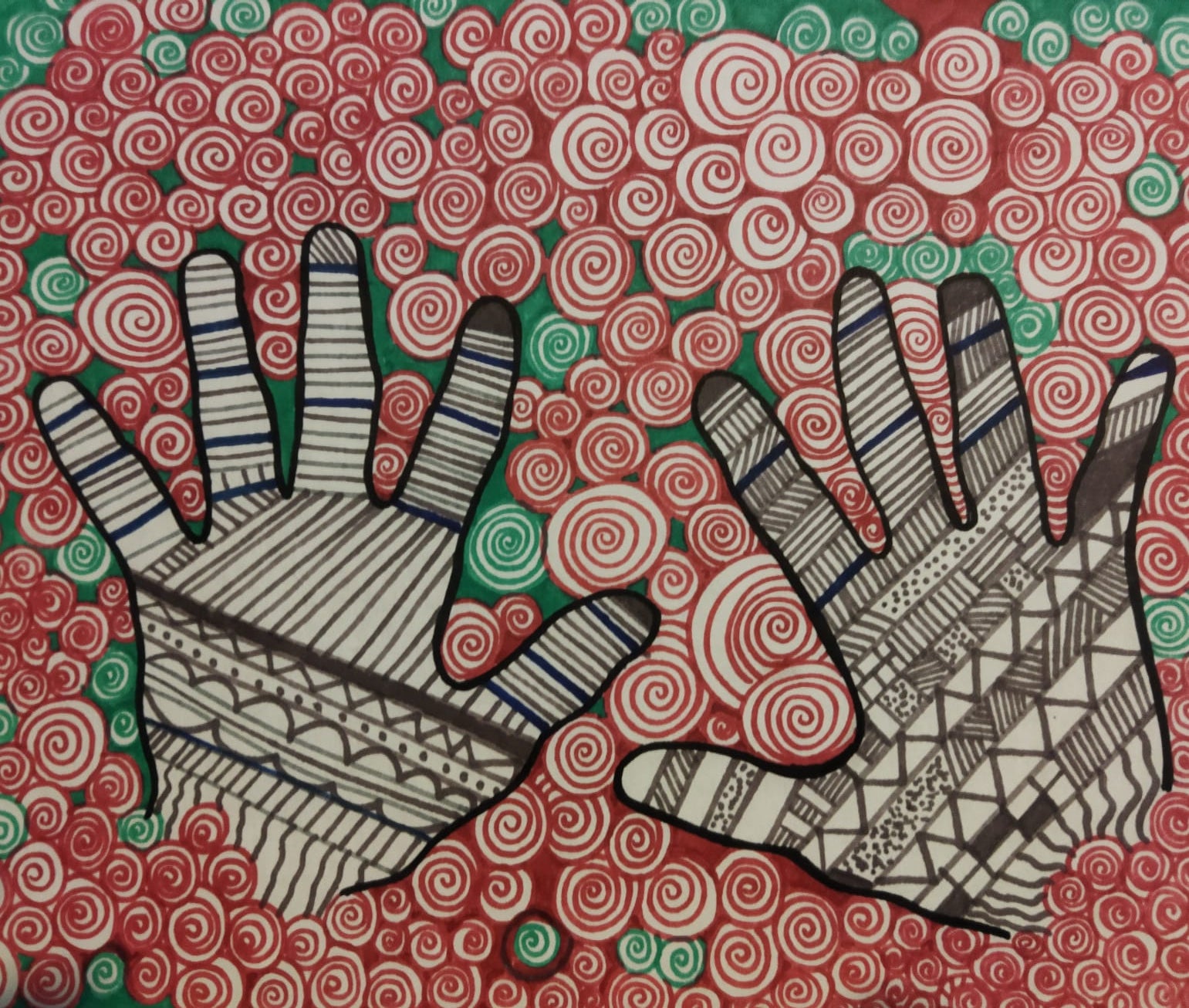 Esta dibujo fue muy divertido de hacer. Me recordo a mi niña interior cuando en la primaria calcabas tus manos en la escuela. Me ayudo a recoradar lo bonitas he utiles que son nuestras manos.
