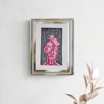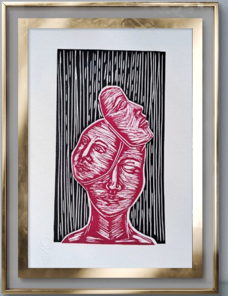 Linograbado ( a dos tintas sobre papel Fabriano para grabado de 260gr, color rojo y negro)