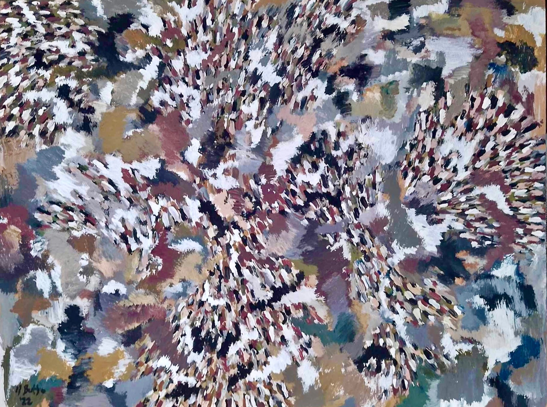 Esta pieza es parte de una serie dedicada a retratar de una manera muy personal el Universo y sus partes constituyentes, en movimiento perpetuo… Esta serie es resultado de mi exploración de un nuevo estilo que surge al combinar mis previas experiencias en el expresionismo abstracto con mi admiración por los grandes exponentes del impresionismo y post-impresionismo, resultando en lo que me gusta llamar neo-impresionismo abstracto.