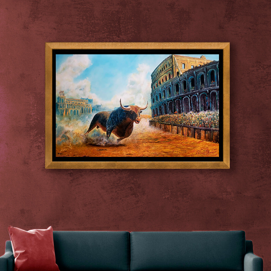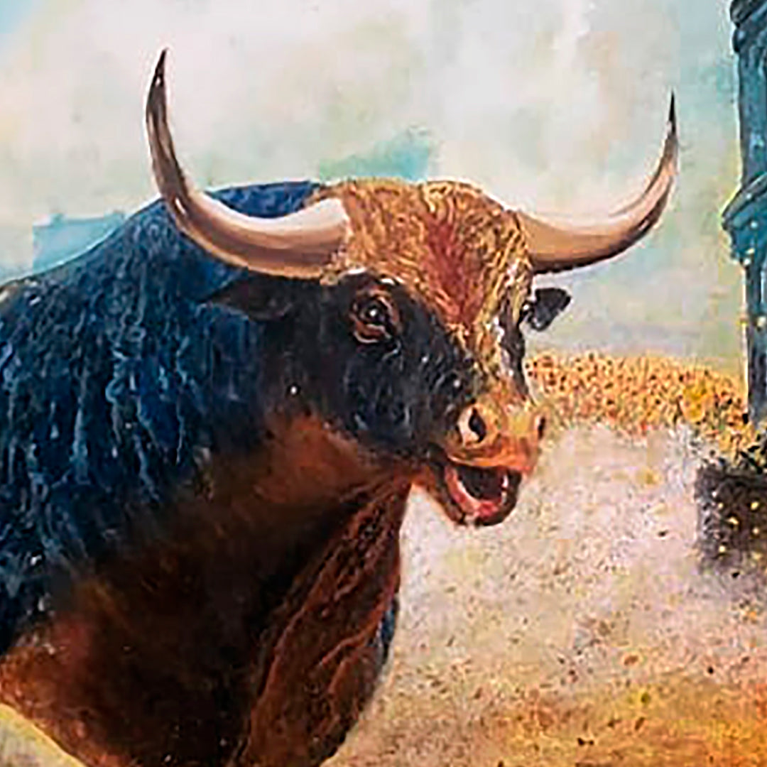 Obra alusiva a la tauromaquia, participante de la 1er exposición Taurina en Galeria "La cuarta Veladura". Obra que muestra la grandeza del toro, evitando imagenes controversiales y crudas de las corridas de toros.