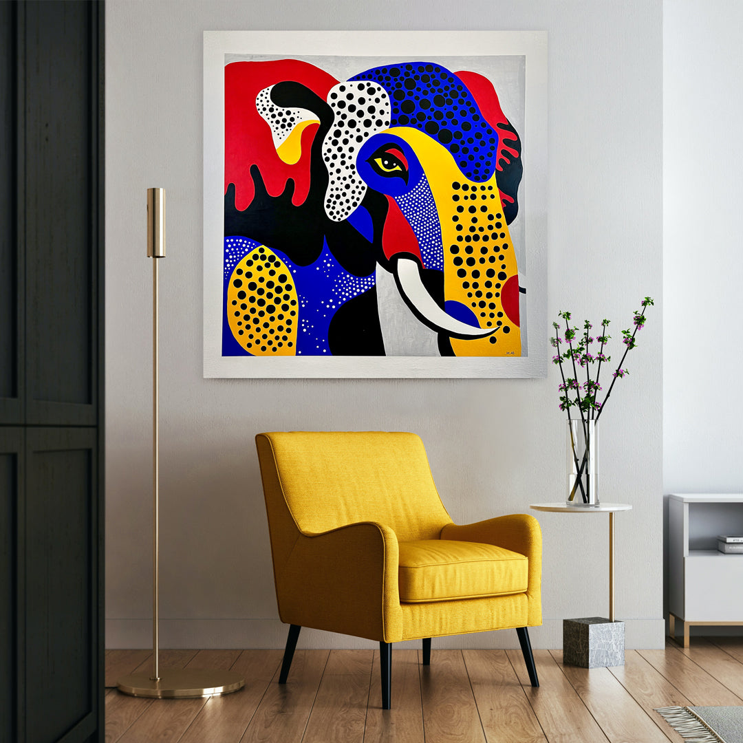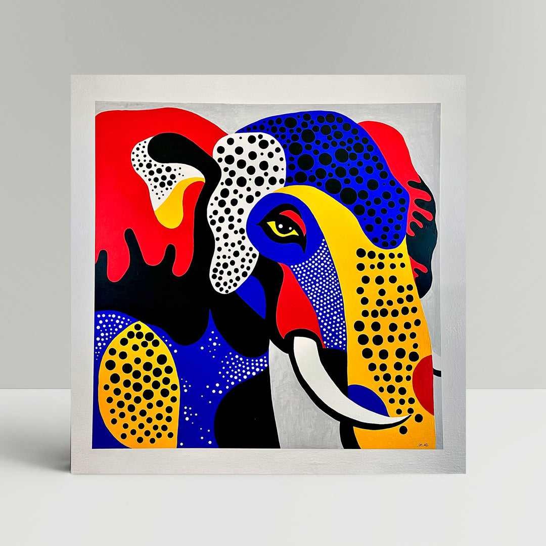 Dicen que los elefantes nunca olvidan… Esta obra es un homenaje al poder de recordar: colores que guardan historias, formas que reviven emociones, y un ojo que lo ha visto todo.