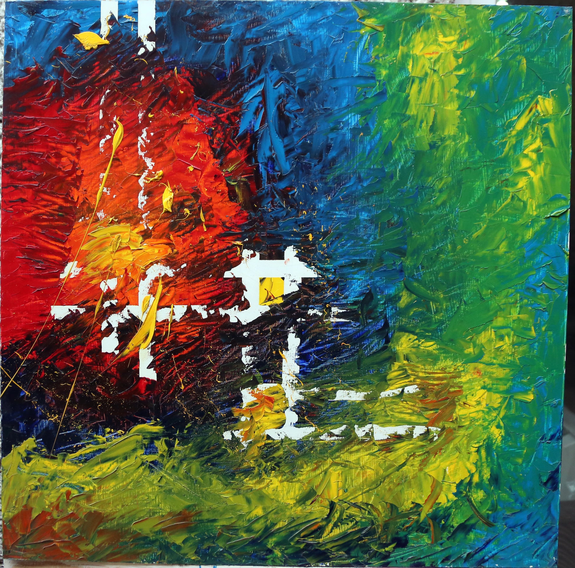 En "Menores Melódicos", el artista emplea una paleta de colores ricos y profundos que se superponen y entrelazan, capturando la esencia melancólica y contemplativa de las tonalidades menores. Las pinceladas y las mezclas de color son aplicadas con una gestualidad rítmica, reflejando la cadencia y el dinamismo de una pieza musical. Los elementos visuales en la obra, desde los trazos fluidos hasta las áreas de color sólido, imitan la complejidad de la composición musical.