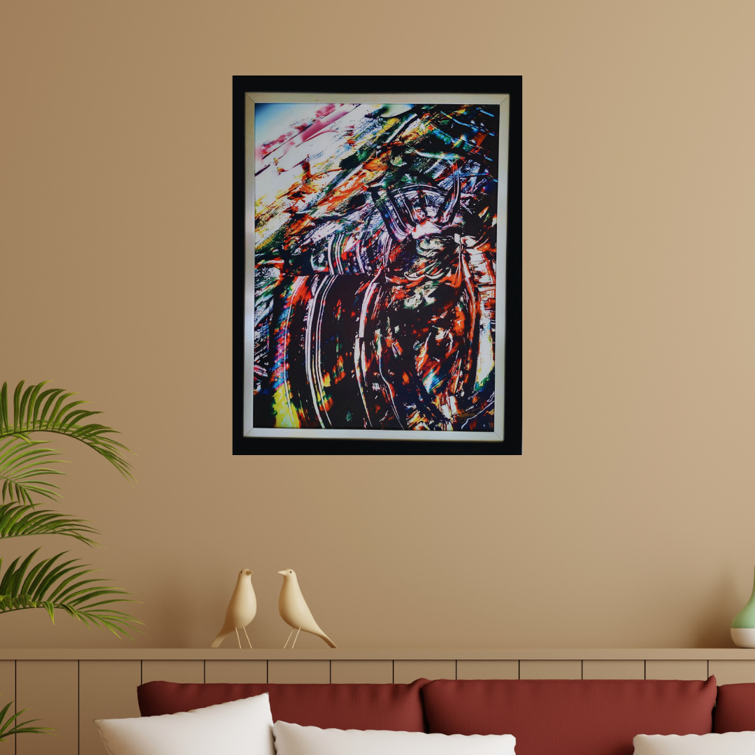 Un torbellino de color y energía encarna la transformación interior. Metamorfosis es una foto-pintura que simboliza el cambio constante, la ruptura del pasado y el renacer desde el caos. Su fuerza visual invita a contemplar la belleza de lo incierto y la evolución como un acto de creación perpetua.