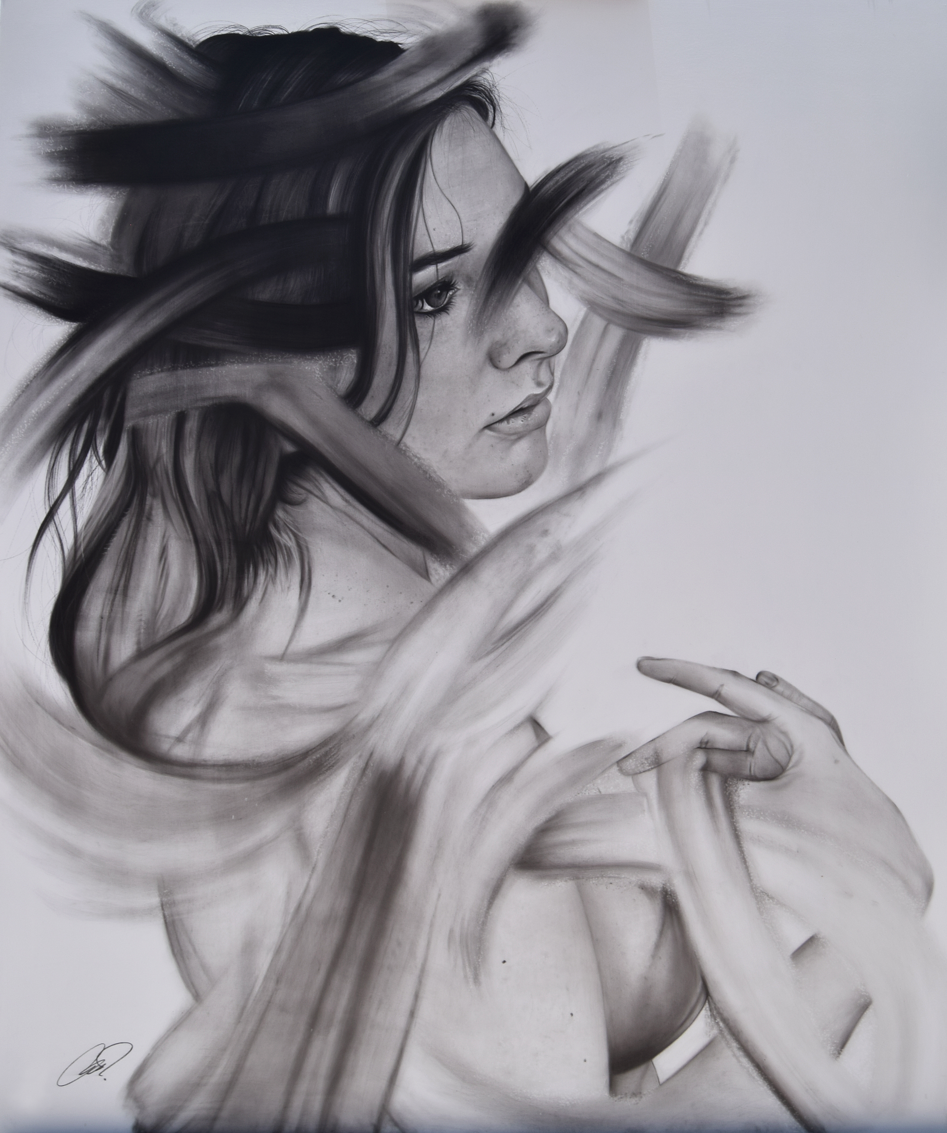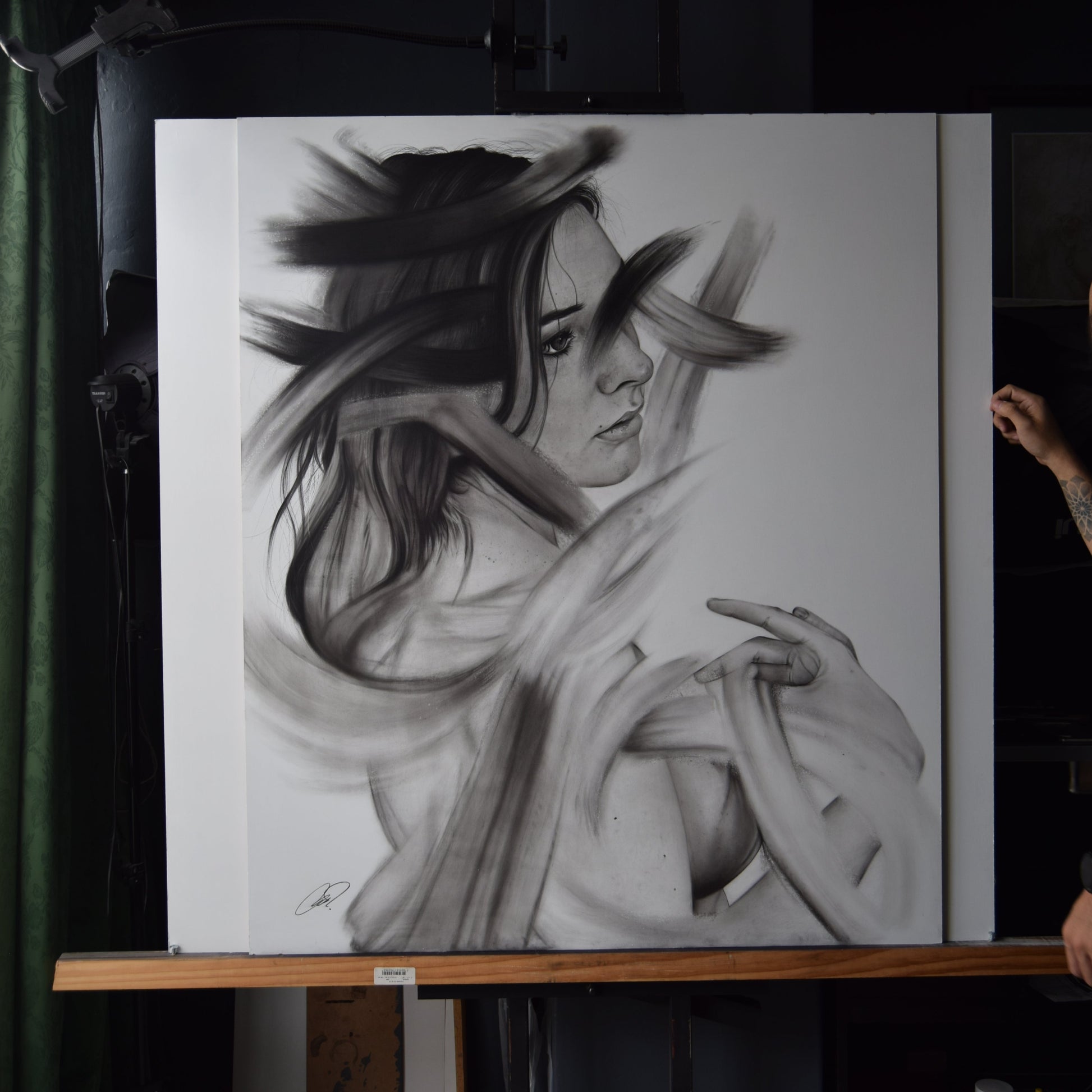 Lápices de grafito y carboncillo sobre tabla.