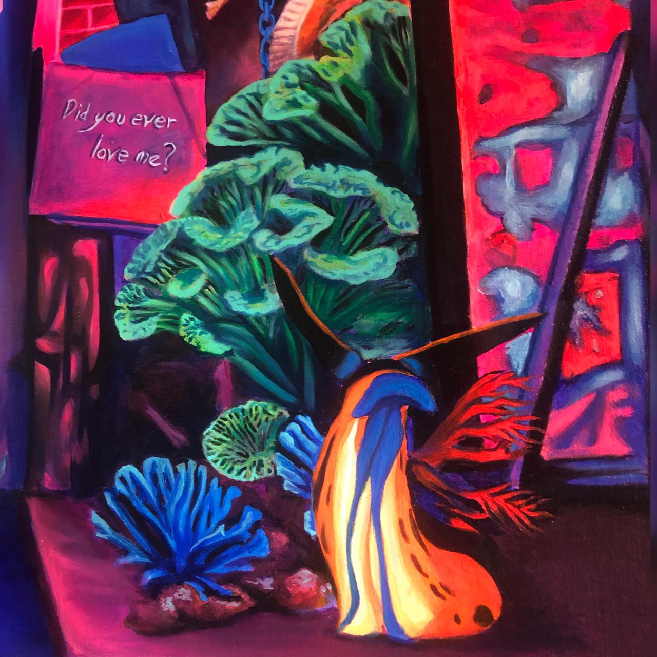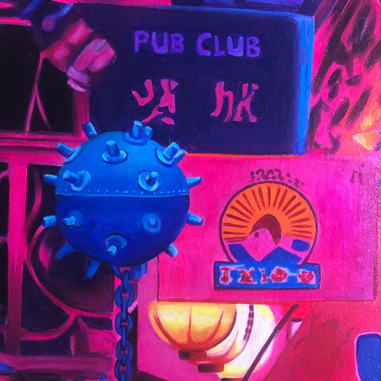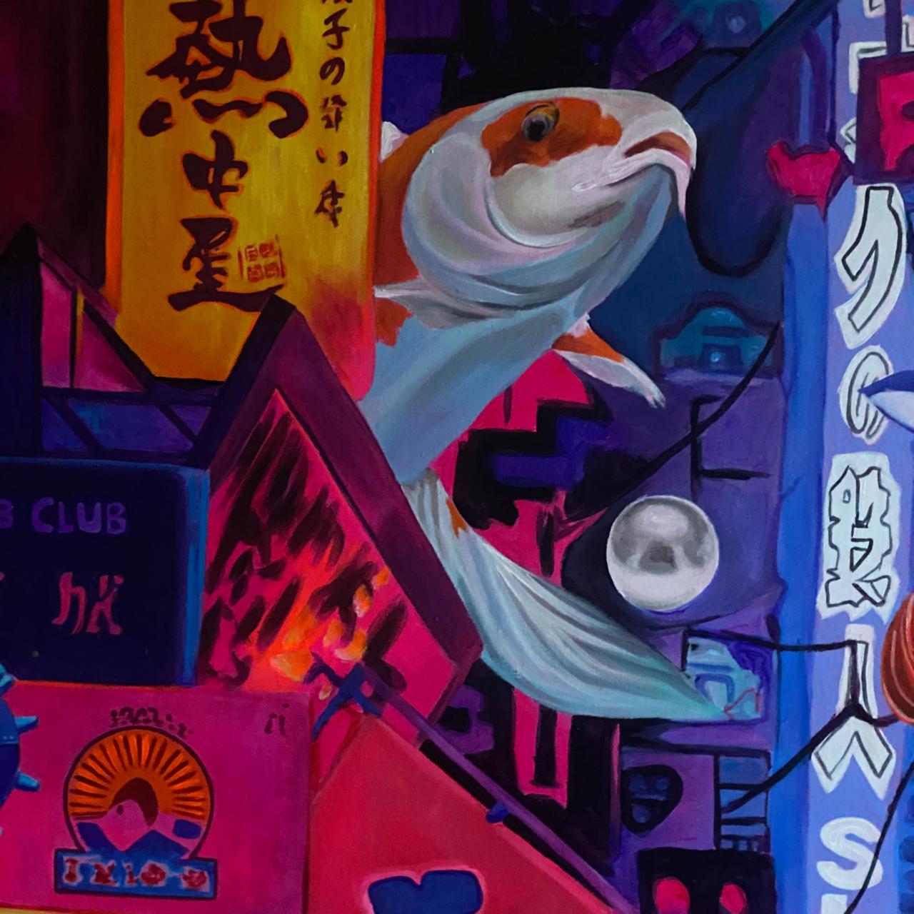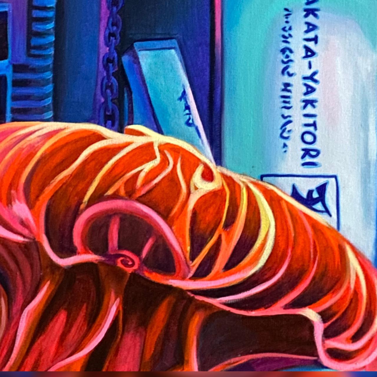 Técnicas mixtas sobre lienzo con efecto fluorescente