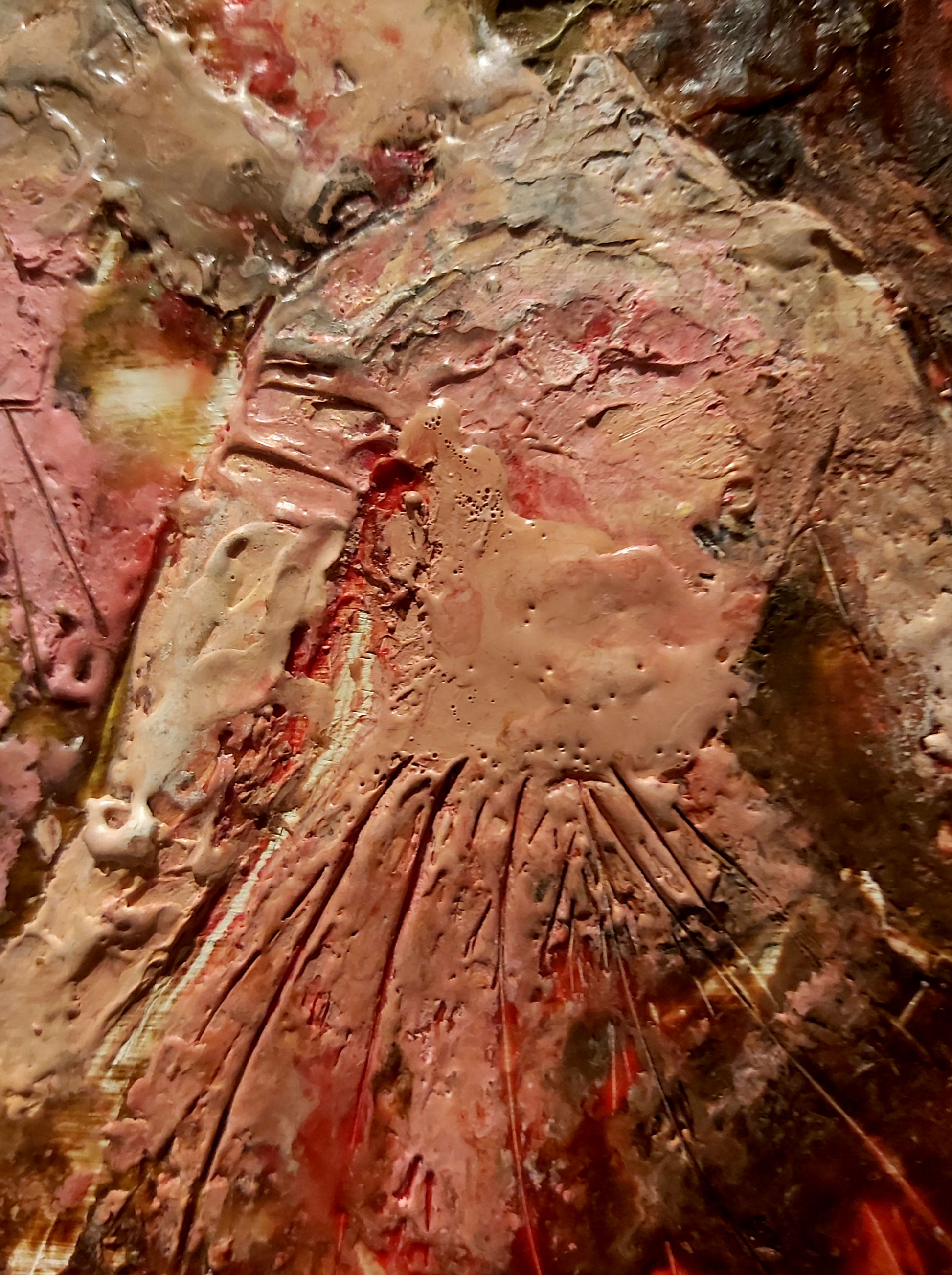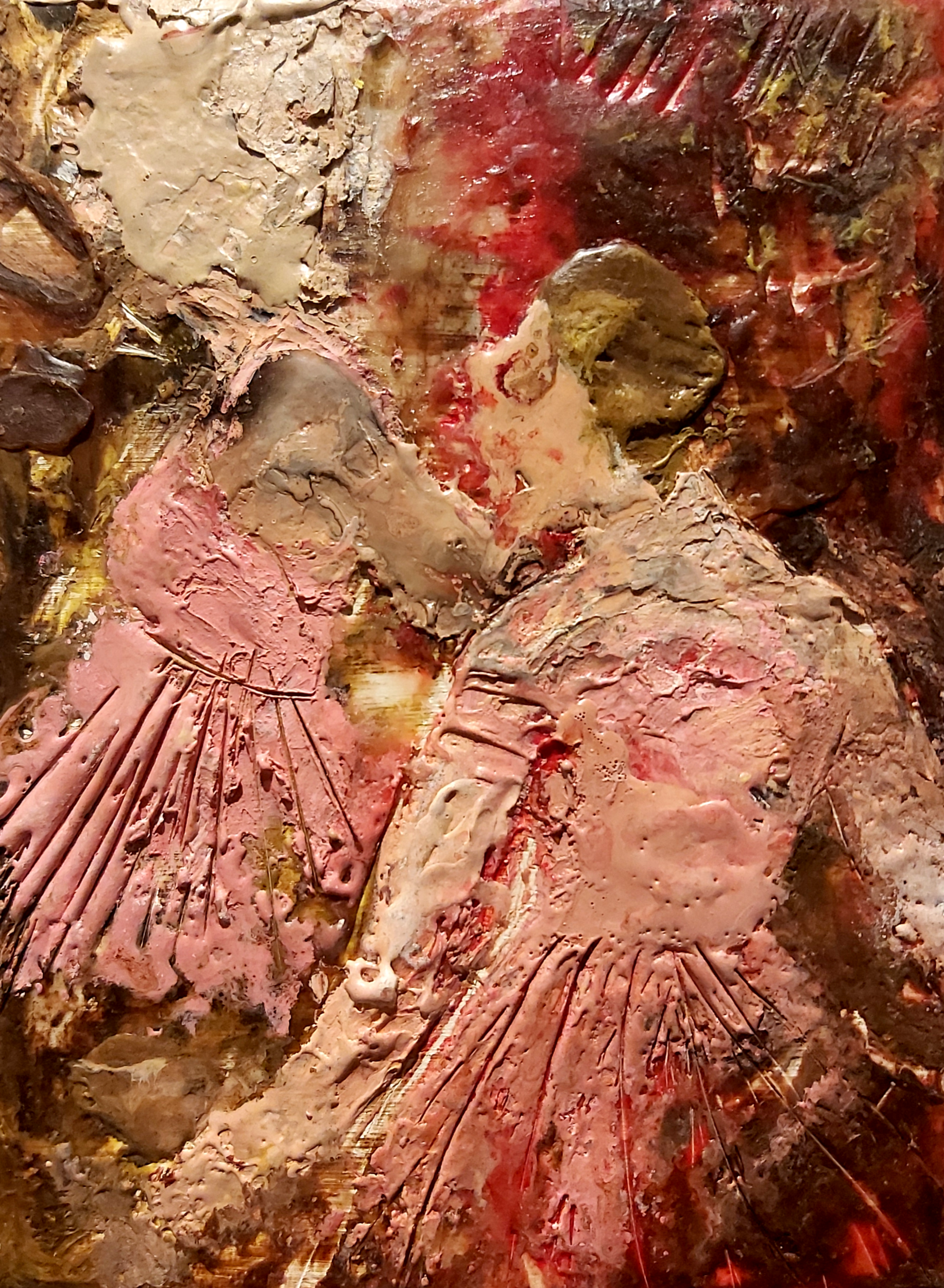 Concepción de la danza, el cuerpo y sus sensaciones en movimiento con el entorno. Técnica de encáustica sobre madera.