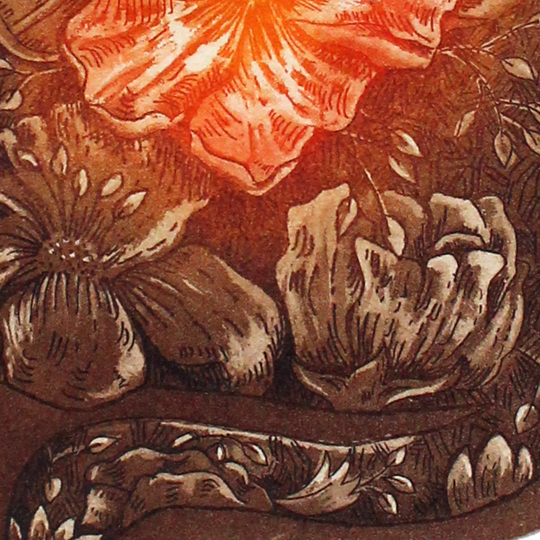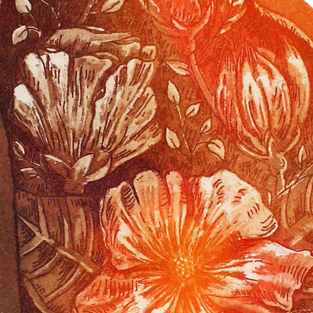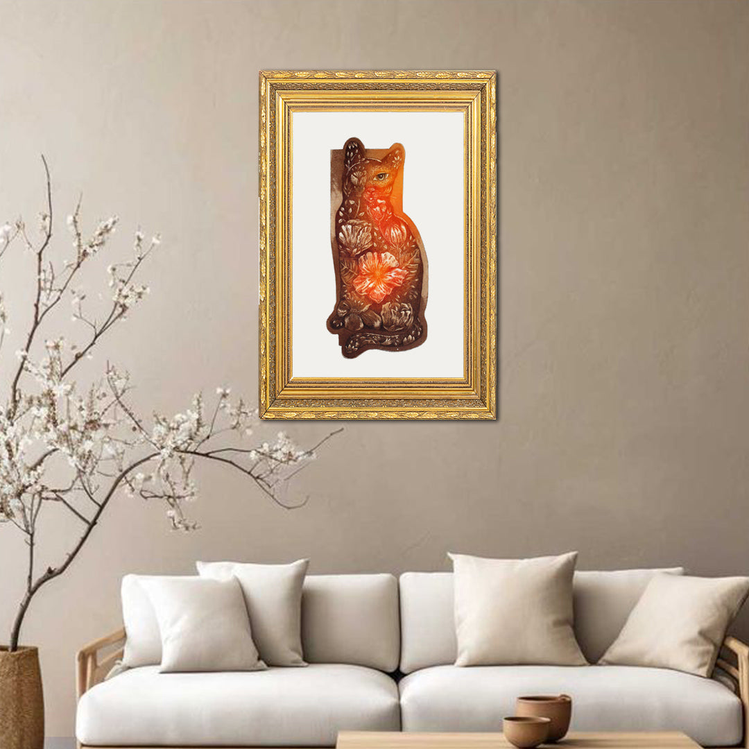 Obra realizada en 2024. De la serie "Resurrección Animal". Representa poéticamente como veo a los gatos, desde su interior, frágil y salvaje como las flores.