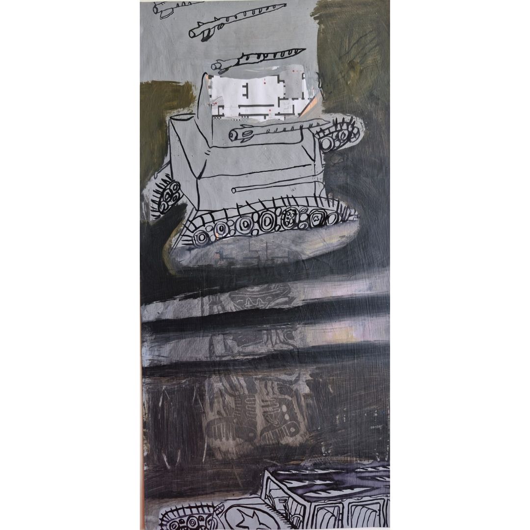 Esta serie de grabados y técnicas mixtas se centra en temas de conflicto y crisis, reflejando tanto las tensiones de guerra como las dificultades cotidianas como la escasez de alimentos, en el contexto de la inseguridad en las calles.
