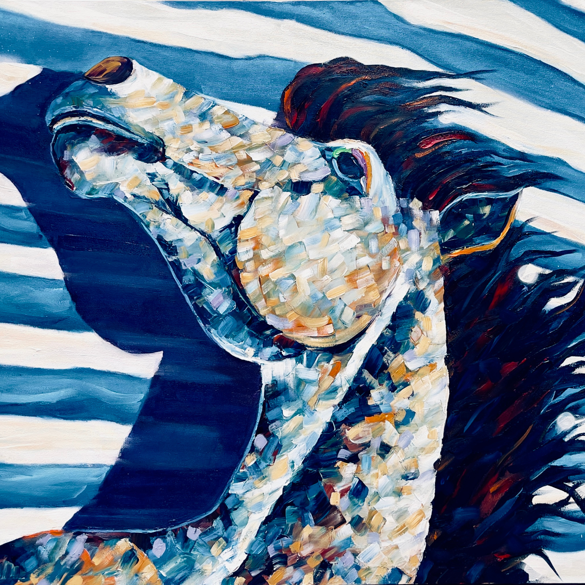 "Un recuerdo que aún respira: la velocidad, el viento y la fuerza de lo indomable recorriendo los campos abiertos de la infancia. Esta obra captura ese primer instante de asombro y libertad pura, cuando el mundo era enorme, salvaje y posible."