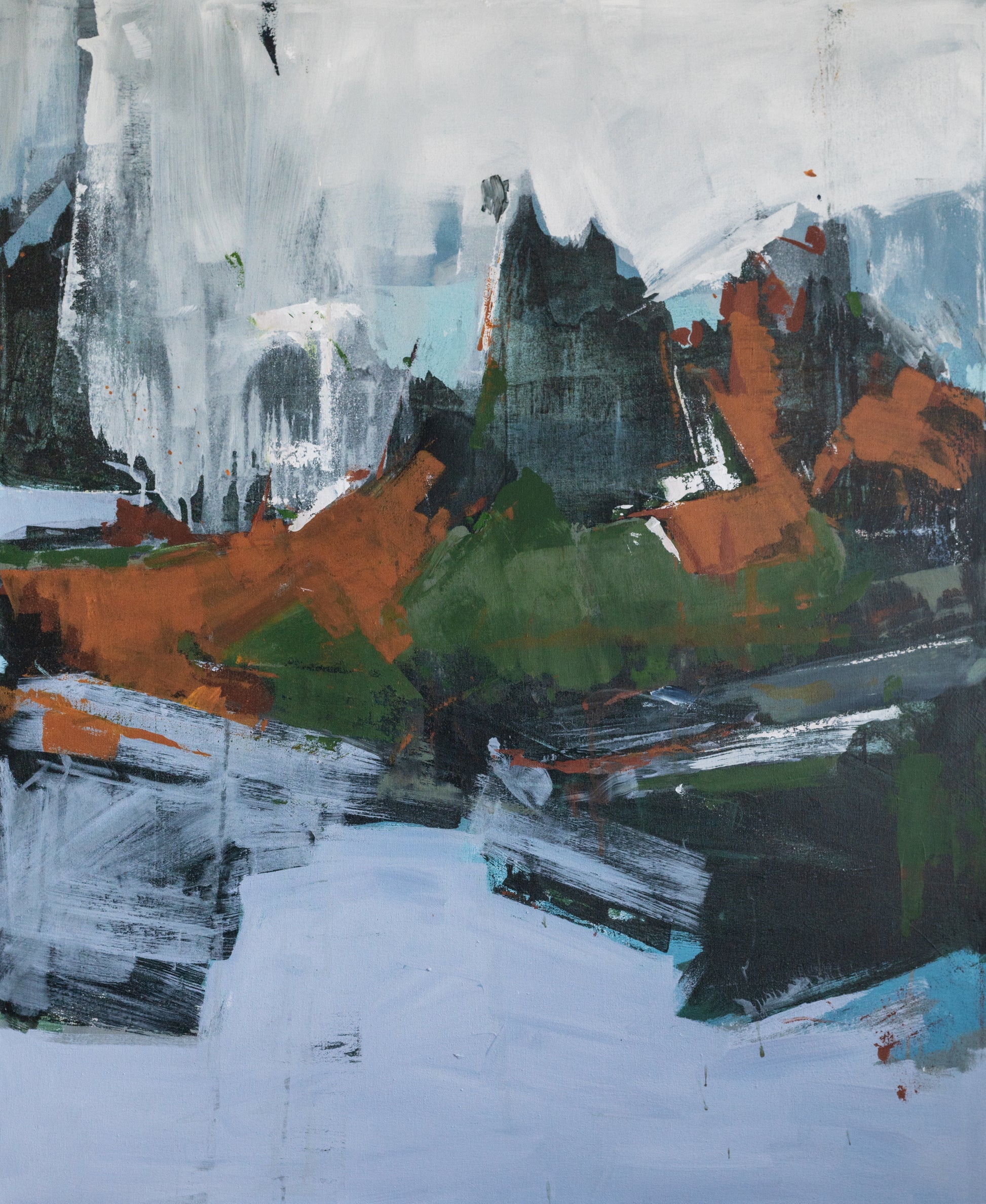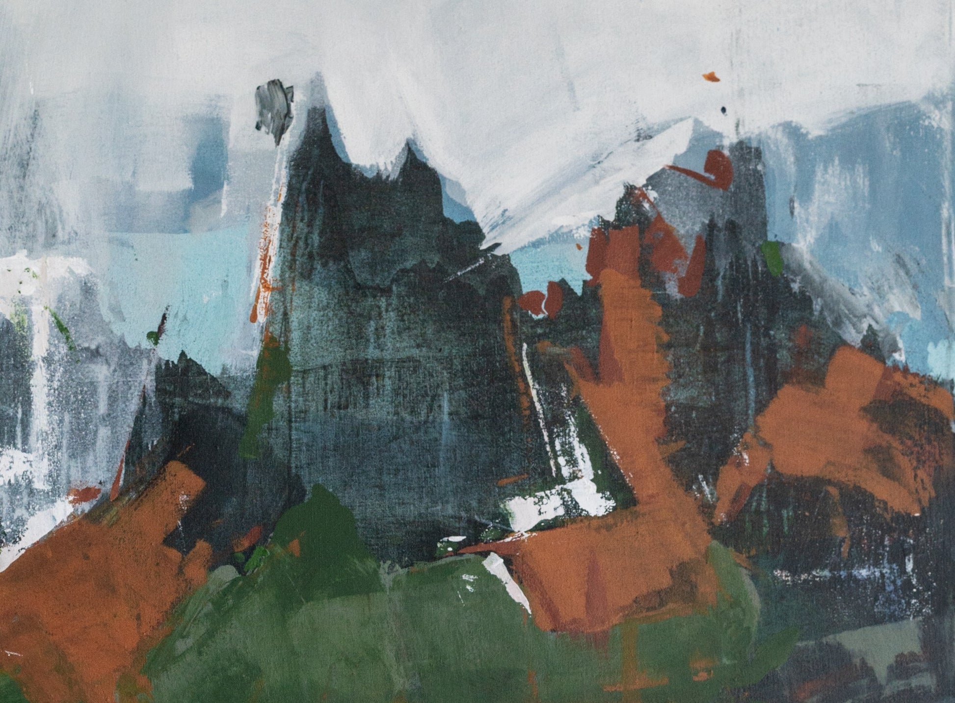 Esta pintura es un paisaje abstracto que ilustra la noche calma en solitud y recogimiento, el momento en que normalmente encontramos silencio e introspección, en esta obra, quise capturar la esencia de una naturaleza vibrante y en movimiento, una montaña flotante que desafía la realidad. Usé acrílicos para crear texturas y contrastes que transmiten energía y misterio, es una invitación a sentir la fuerza de la tierra y el viento, generando un espacio lleno de vida y reflexión.