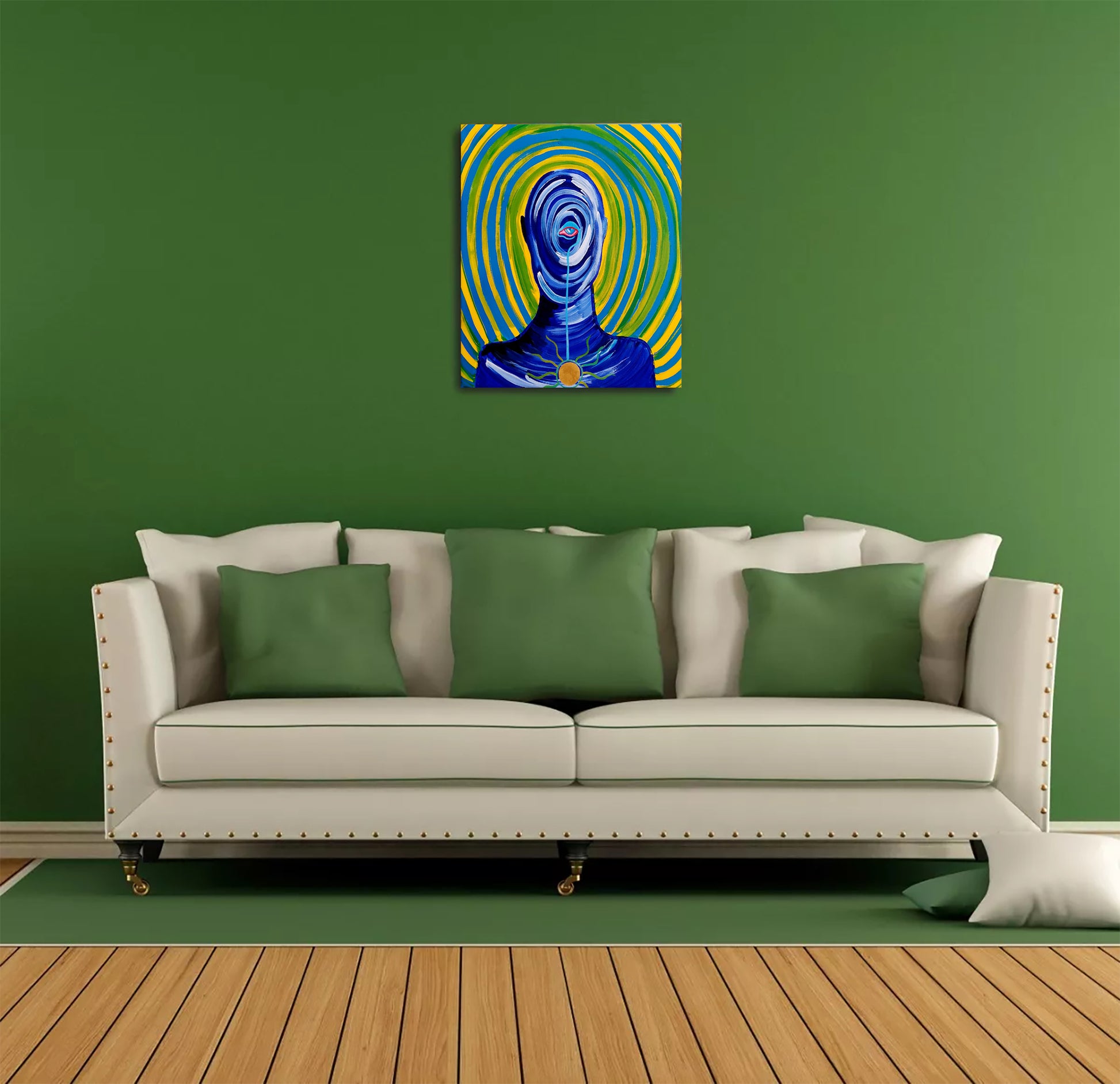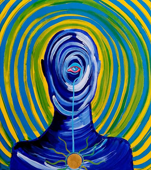 Esta pieza deja en evidencia la apertura del tercer ojo en el interior del ser humano. Dónde desde lo más oscuro nace esta conexión con nuestra luz interior, mostrando a través del gesto la expansión de las energías cósmicas.