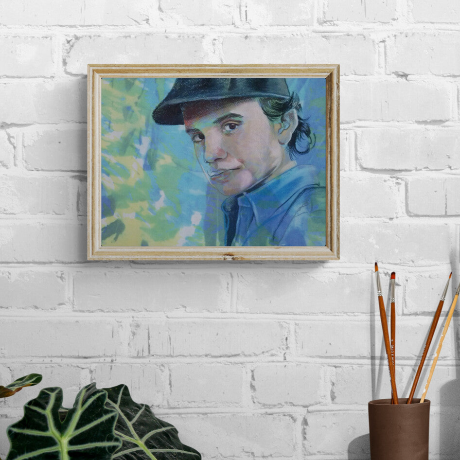 Utilizando una combinación de tinta, pastel y grafitos de color, realicé este dibujo inspirado en una fotografía capturada durante una reunión familiar.