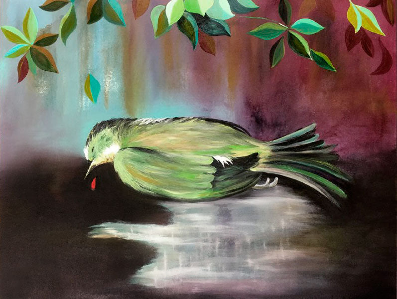 Esta obra invita a reflexionar sobre la fragilidad de la vida y nuestra conexión con el entorno. Inspirada en un encuentro fortuito con un pájaro, la imagen captura la delicadeza de un ser vivo frente a los desafíos ambientales. La sutil gota de sangre que cae de su pico simboliza un llamado de atención: lo que puede parecer una escena cotidiana revela la sensibilidad de la naturaleza ante el deterioro que a menudo ignoramos. Esta pieza nos recuerda que la belleza y la vida son vulnerables, haciéndola una obra significativa para cualquier espacio.