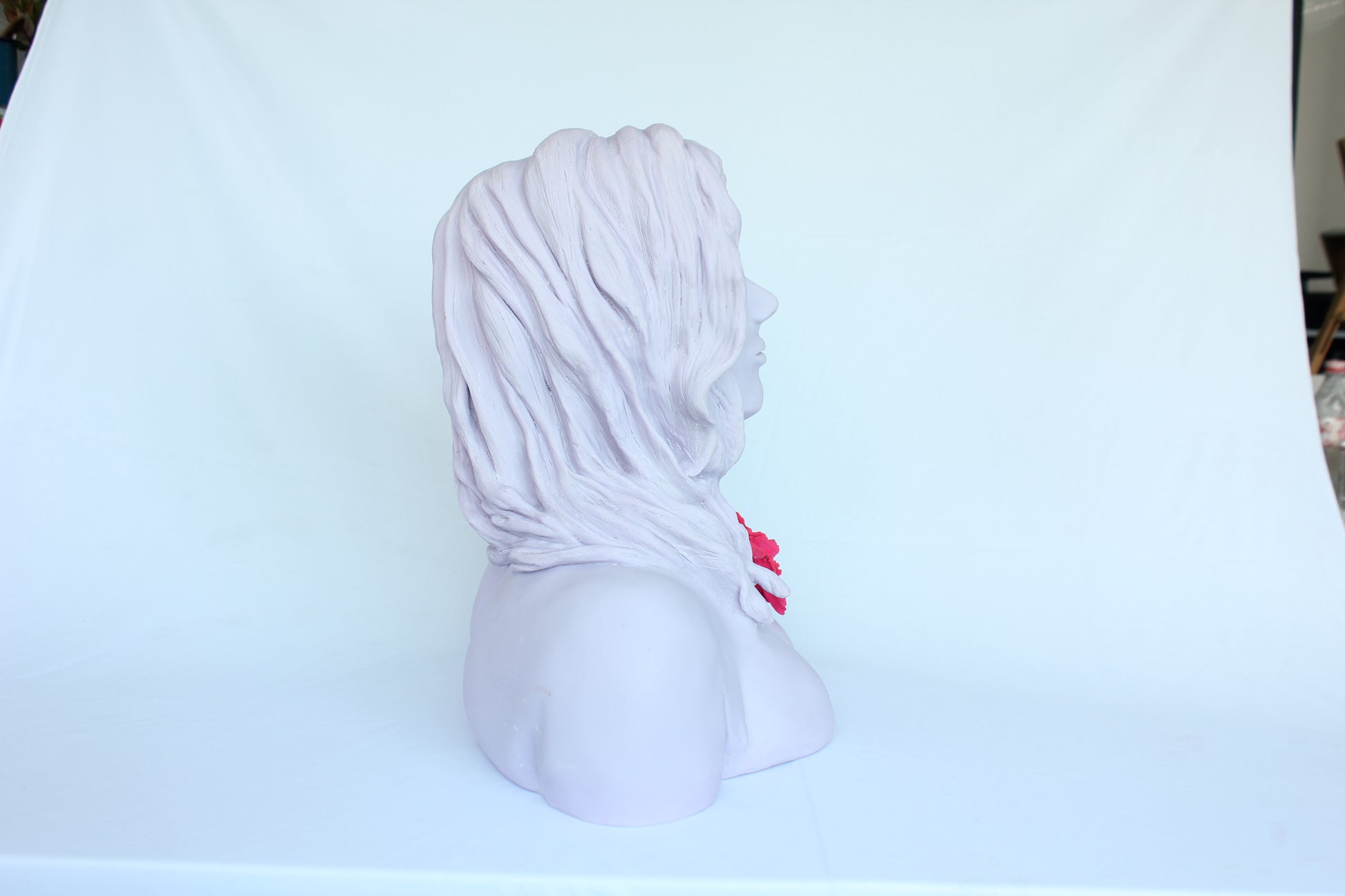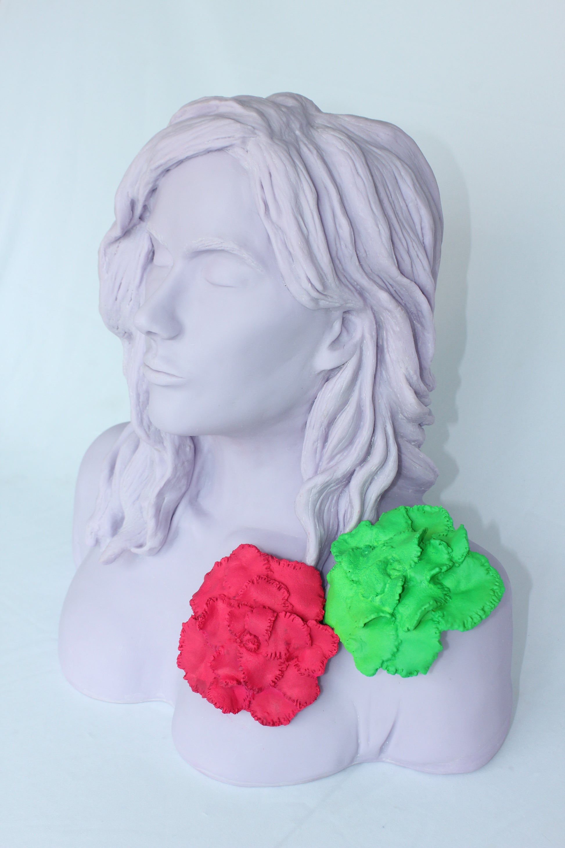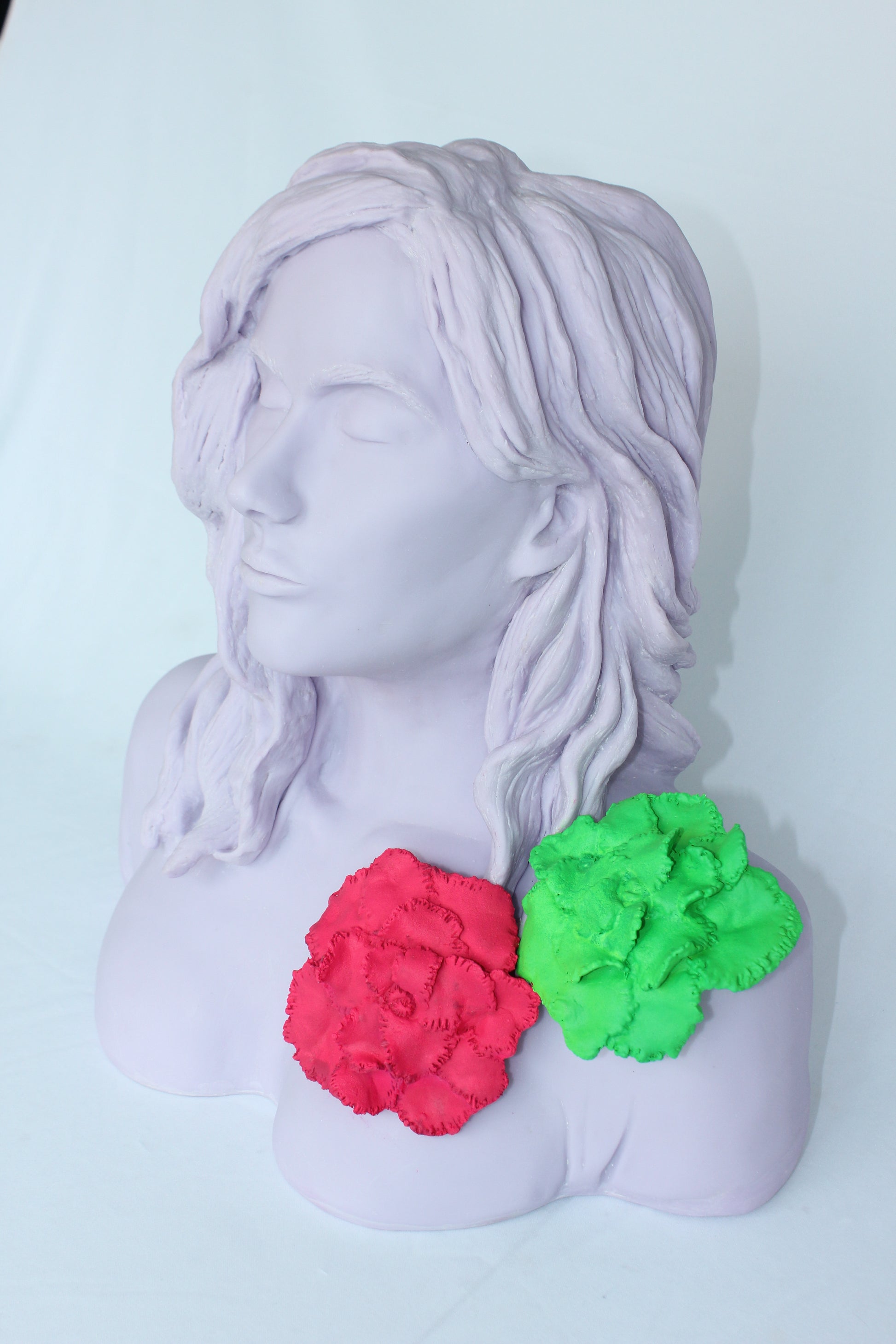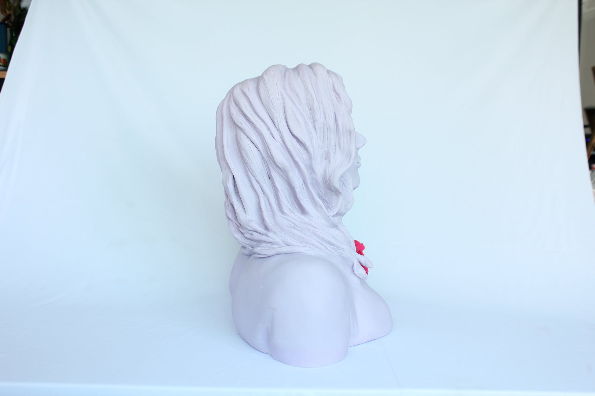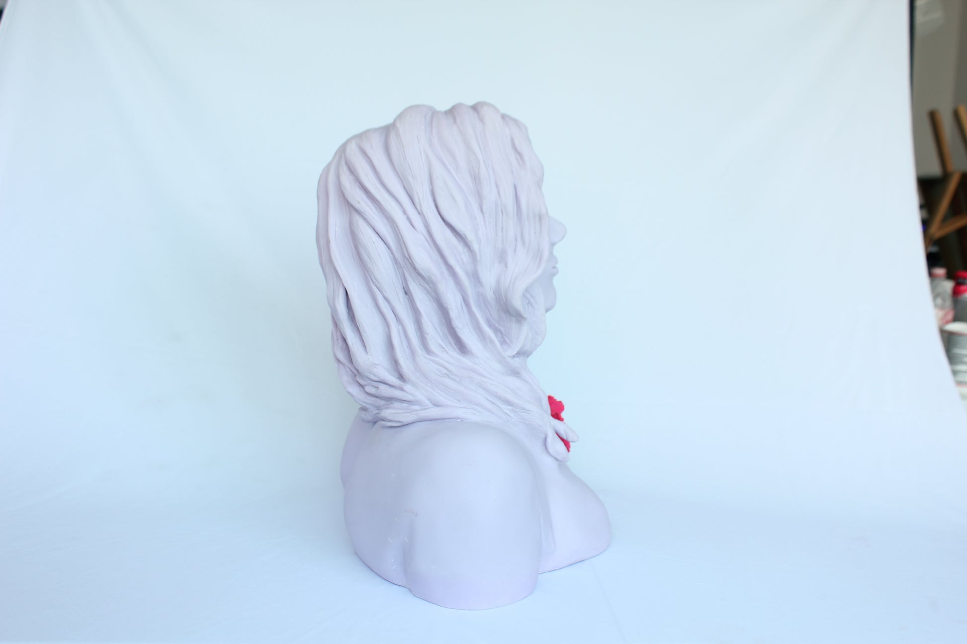 Mujer Mexicana es una impactante escultura creada por Celeste Bejarano, elaborada en resina epóxica. Esta obra explora la feminidad no solo como una identidad, sino como un poderoso agente de transformación social. En su creación, los tonos violetas predominan, simbolizando el proceso introspectivo y el empoderamiento de la mujer al reconectarse con su feminidad. La obra sugiere un viaje interno, donde la figura femenina se reconstruye, mirándose a sí misma para encontrar la fuerza y la sabiduría necesarias para influir en su entorno. Celeste plasma en esta pieza la idea de que la verdadera transformación comienza desde adentro.