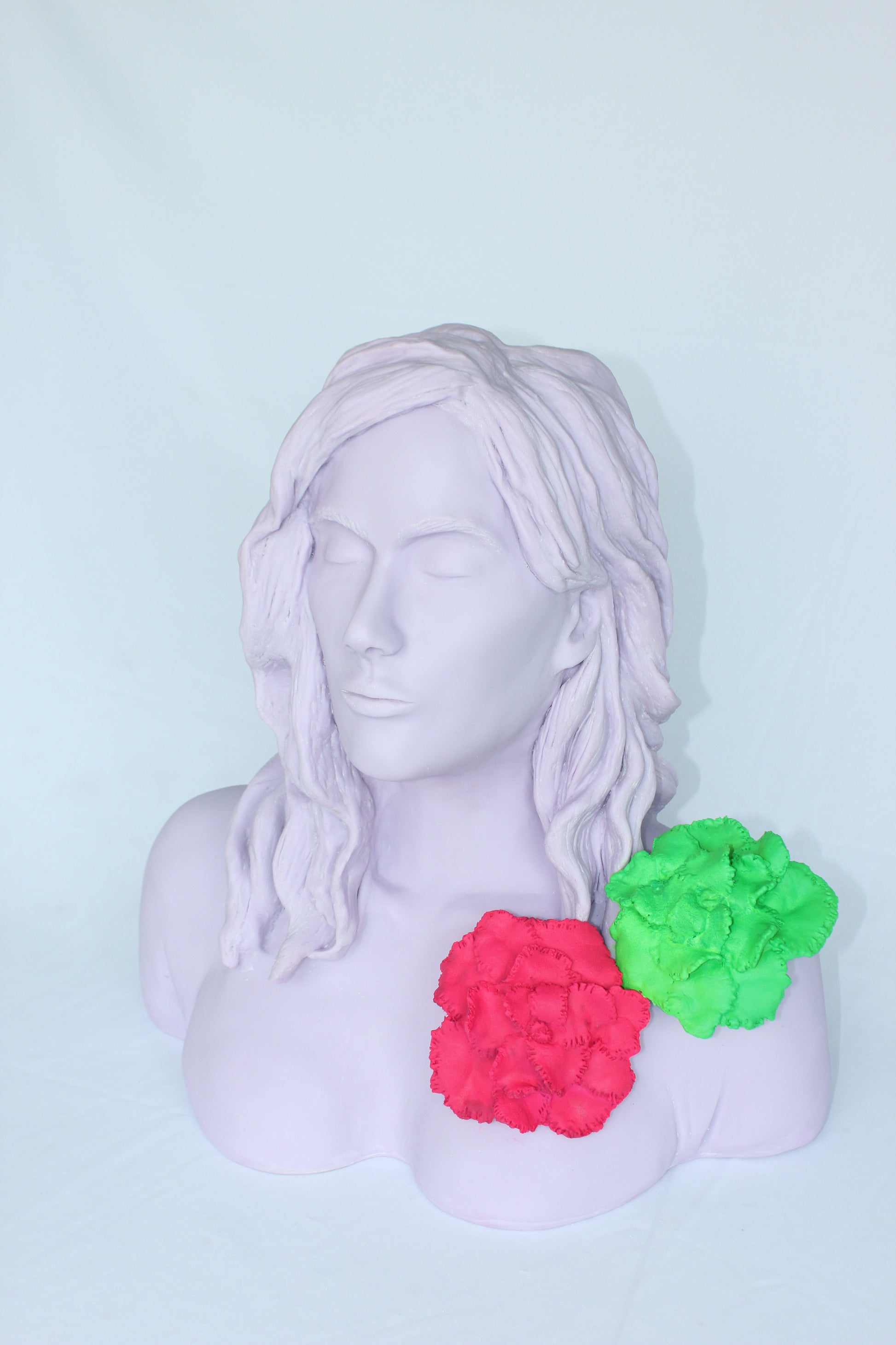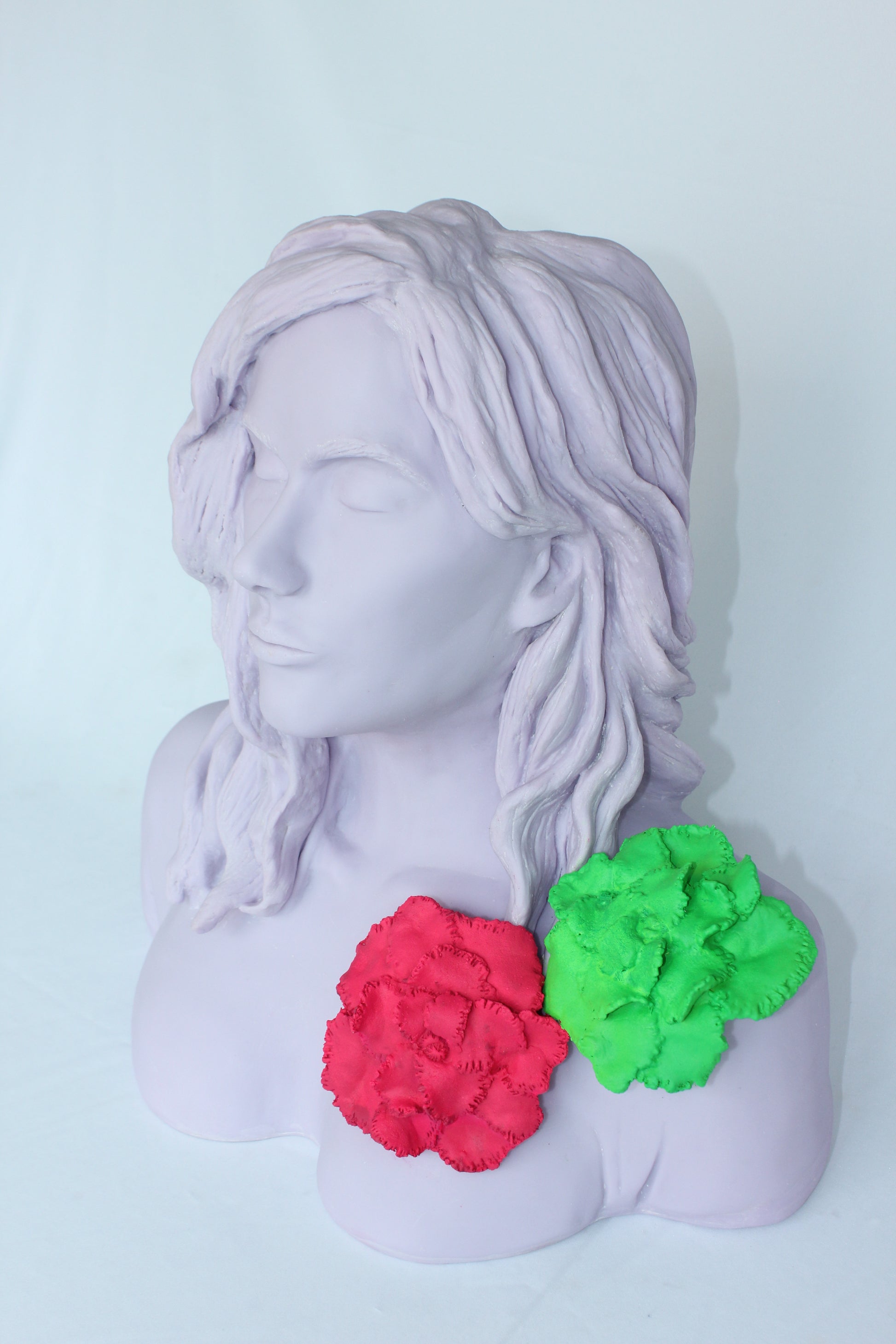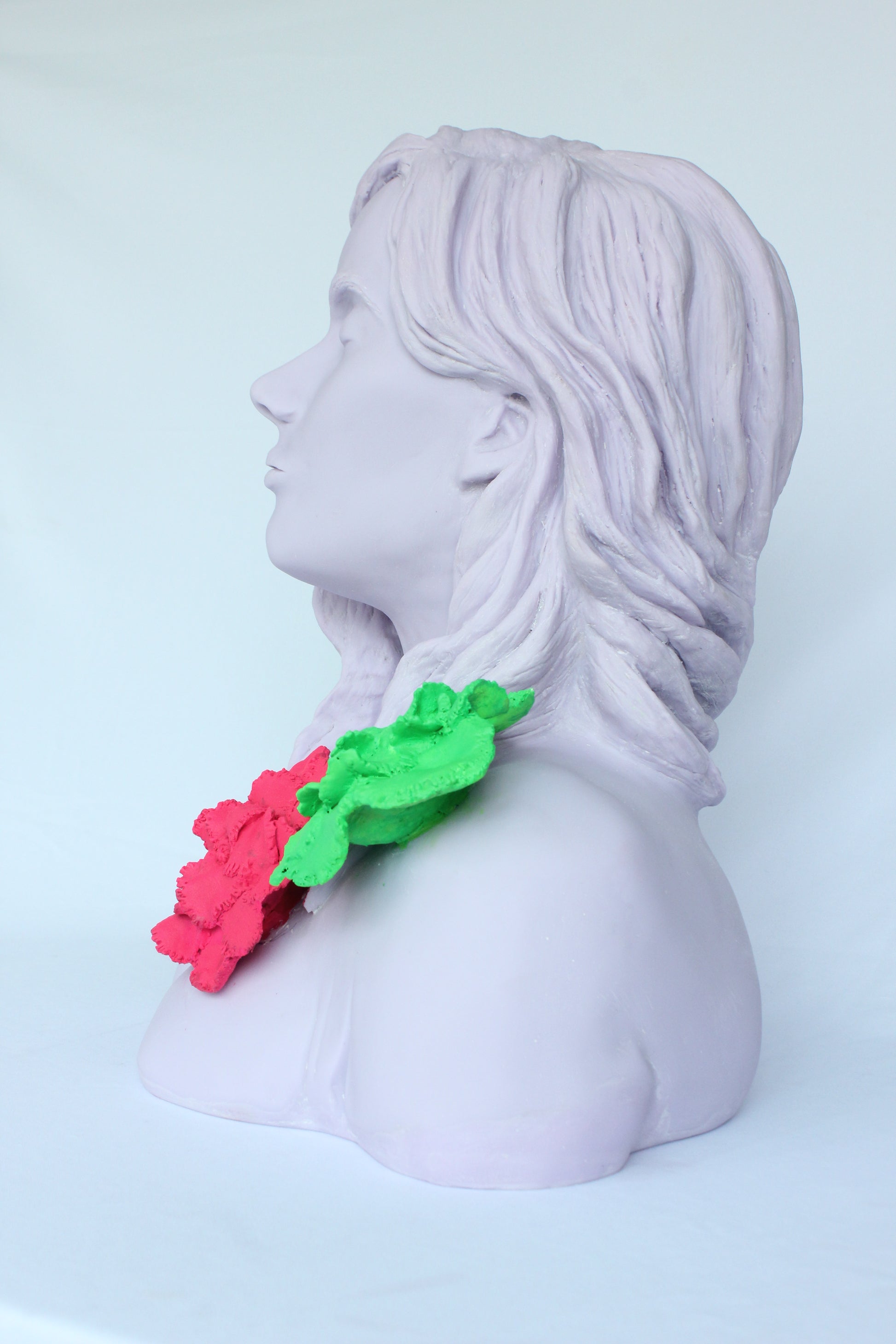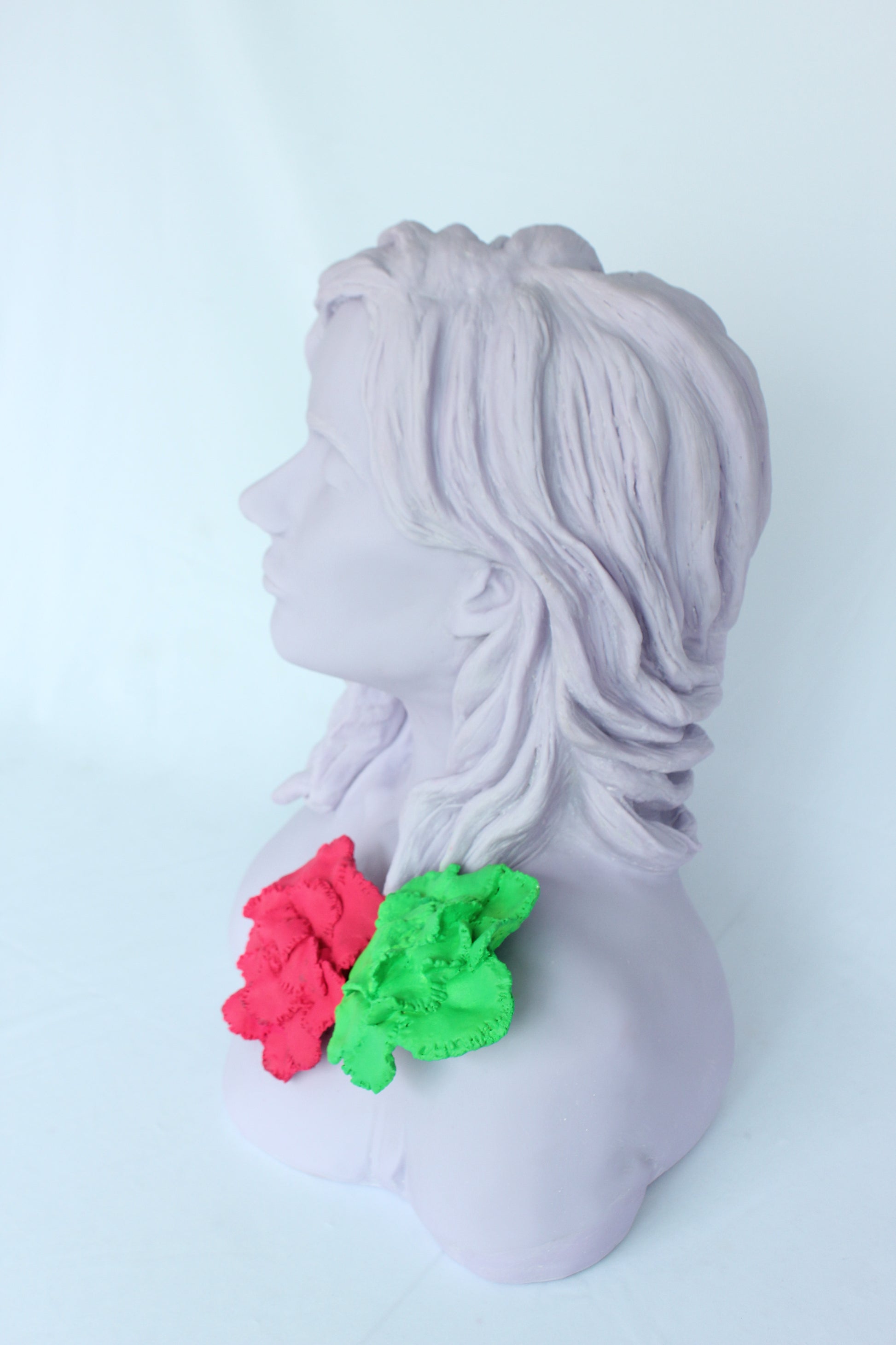 Mujer Mexicana es una impactante escultura creada por Celeste Bejarano, elaborada en resina epóxica. Esta obra explora la feminidad no solo como una identidad, sino como un poderoso agente de transformación social. En su creación, los tonos violetas predominan, simbolizando el proceso introspectivo y el empoderamiento de la mujer al reconectarse con su feminidad. La obra sugiere un viaje interno, donde la figura femenina se reconstruye, mirándose a sí misma para encontrar la fuerza y la sabiduría necesarias para influir en su entorno. Celeste plasma en esta pieza la idea de que la verdadera transformación comienza desde adentro.
